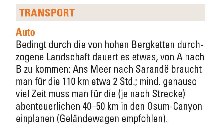 Dass wir ein Geländeagen empfehlen steht zwar im Buch auf S. 441 bei der Anreise von Permet. Ich werde es aber noch mal viel klarer und deutlicher herausstellen, wenn wir die nächste Auflage herausbringen.