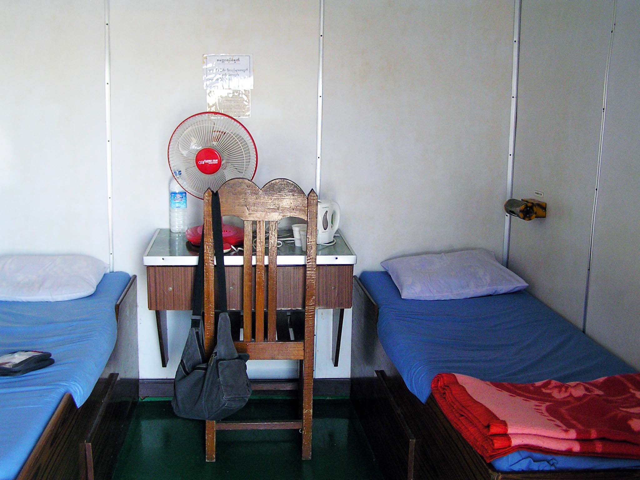 Im November 2012 haben wir problemlos eine 2-Bett Kabine auf dem ITW Schiff für 70,- USD / p. P. buchen können. Start war um 6 Uhr, geplant waren 2 Übernachtungen, nachdem wir Bhamo aber erst um Mitternacht erreichten, konnten wir auch die 3. Nacht bis zum Morgen in der Kabine bleiben.