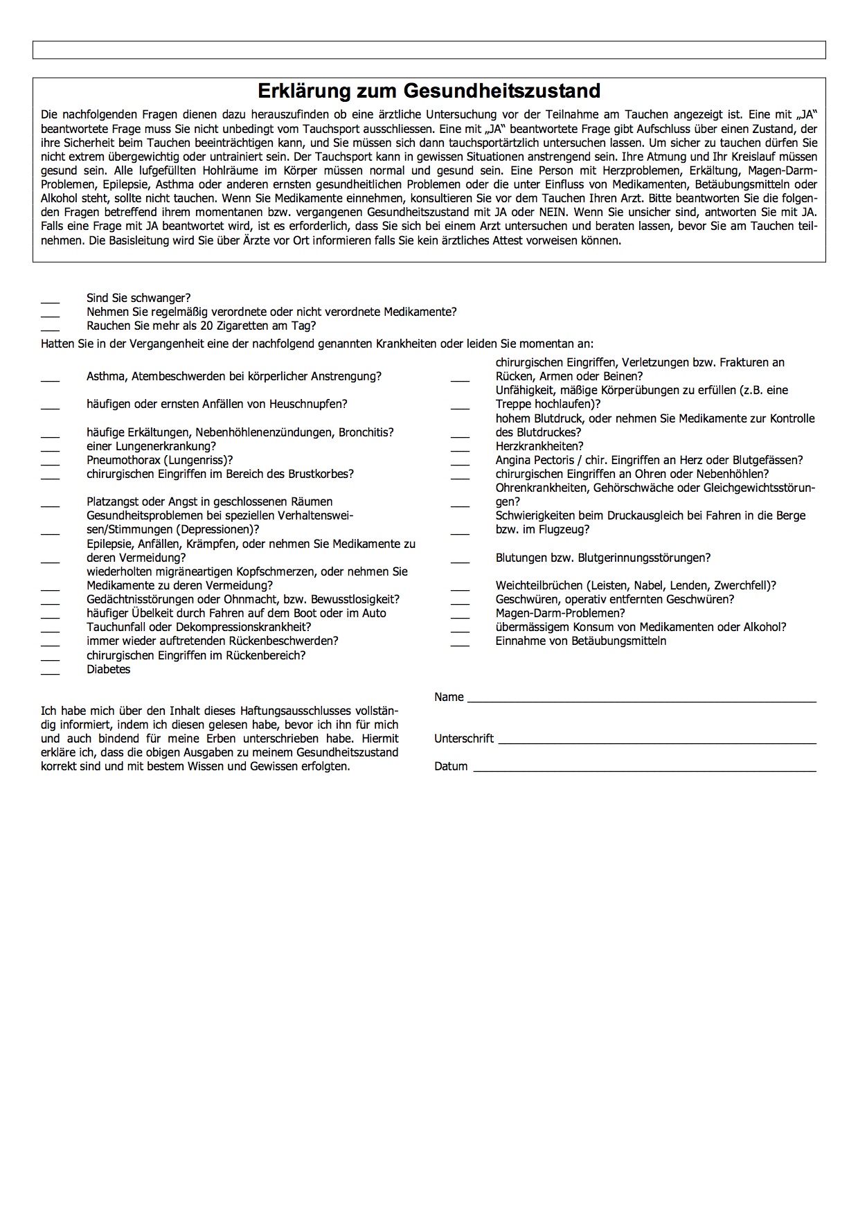 Ich musste damals noch nicht einmal meinen Tauchschein vorlegen ganz zu Schweige von einem ärztliche Artest.