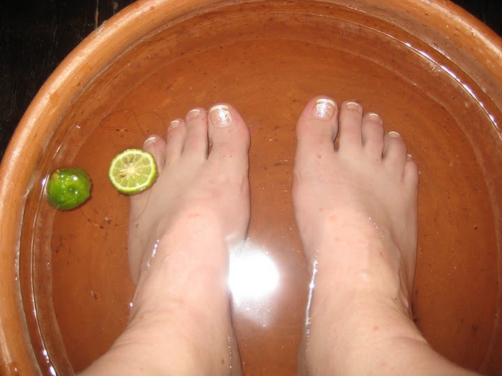 Schon mit der Fusswaschung mit Limetten vor der Massage beginnt die Entspannung.