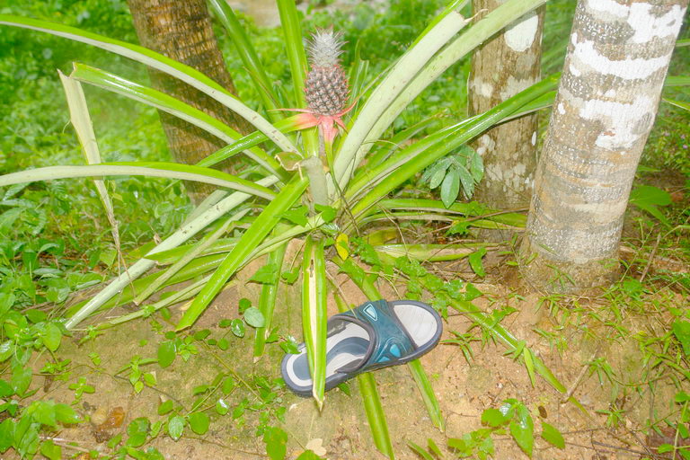 Es ist aber die Oelpalme. Das aus den grossen Fruchtdolden gewonnene Oel wird zur Speisebereitung genutzt, aber auch immer mehr als Treibstoffersatz. Die Ananas-Pflanze ist eher unscheinbar. Sie wird oft als Zwischenbepflanzung in Plantagen eingesetzt. Wir schneiden den oberen "Deckel" mit den Blattaustrieb ab und pflanzen diesen sofort ein. Debei sollen nur noch die Blaetter herausschauen. Ein Vitamin-B1-Wurzelstarter ist sehr effektiv. Grundsaetzlich muesste das auch in Deutschland an der Fensterbank funktionieren. Unbedingt Staunaesse vermeiden. Sand mit Lehm gemischt ist ideal. Siehe auch: http://de.wikipedia.org/wiki/Ananas#Anspr.C3.BCche Ernte nach etwa 20 Monaten. |