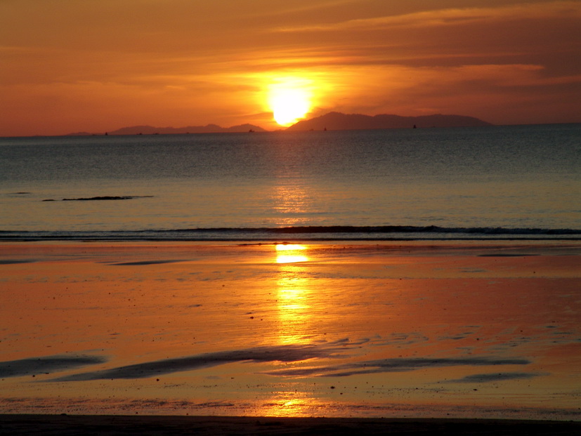 wenn man genau hinschaut, etwa einen Finger breit vom linken Rand, die zwei kleinen Erhebungen, das ist Kho Surin.