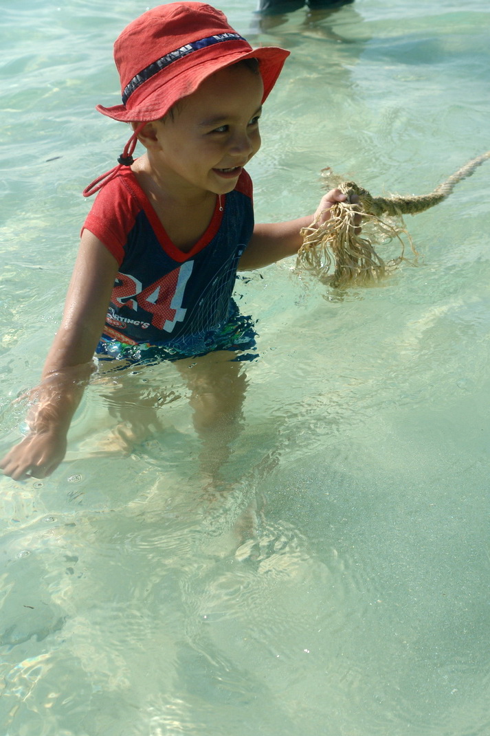 Also Hose etwas hoch und durch, aber das Wasser ist an Neumond bekanntlich hoeher und so reichte dies nicht. Dem Kleinsten stand es immerhin bis zum Hals.