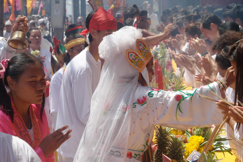 Ich war vor zwei Jahren bei der Abschlussveranstaltung des Vegetarian Festivals in Phang Nga. Ich glaube wir waren die einzigen drei "Touristen" dort. War jedoch, oder vielleicht gerade aus diesem Grund, total beeindruckend. Wir sind dann von einer älteren Dame, die auch an den Zeremonien direkt beteiligt war, angesprochen worden. Sie hat uns Glück für uns und unsere Familien ausgesprochen. War total nett. |