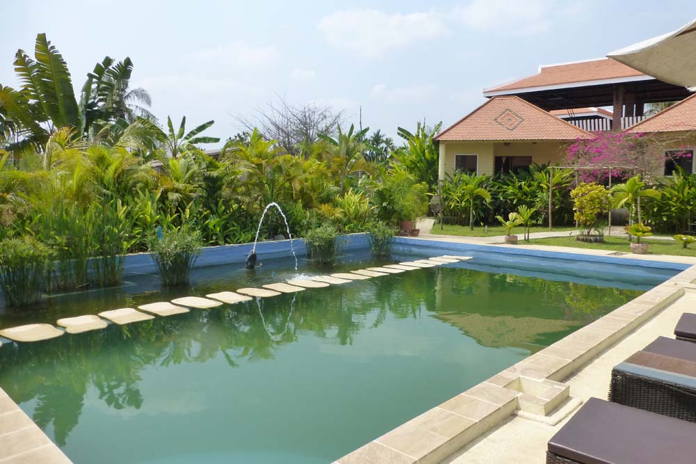 Ein tropischer Garten und ein Naturpool: tolles Ambiente. Dazwischen stehen die großen Bungalows zwischen viel Grün. Sie sind recht nett möbliert, mit einem Hauch kolonialer Atmosphäre. Große Bäder mit abgetrennter Dusche.