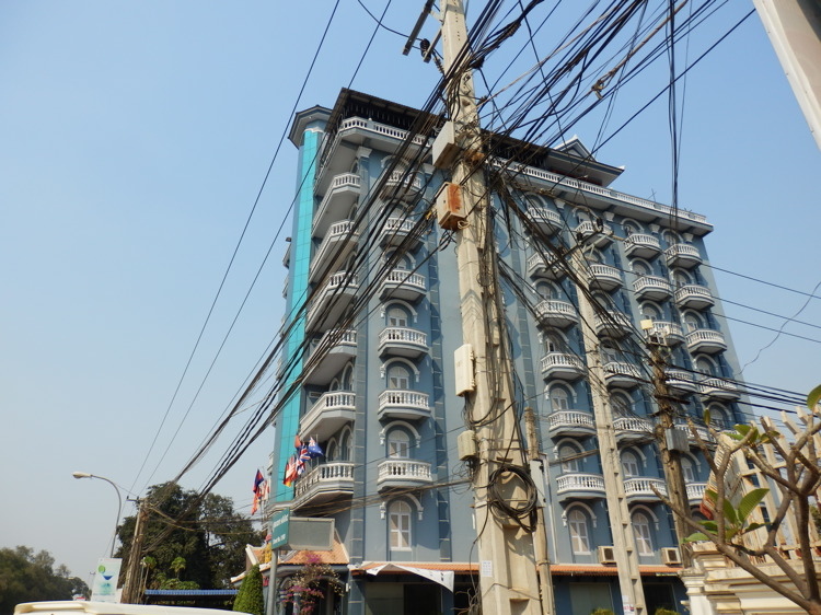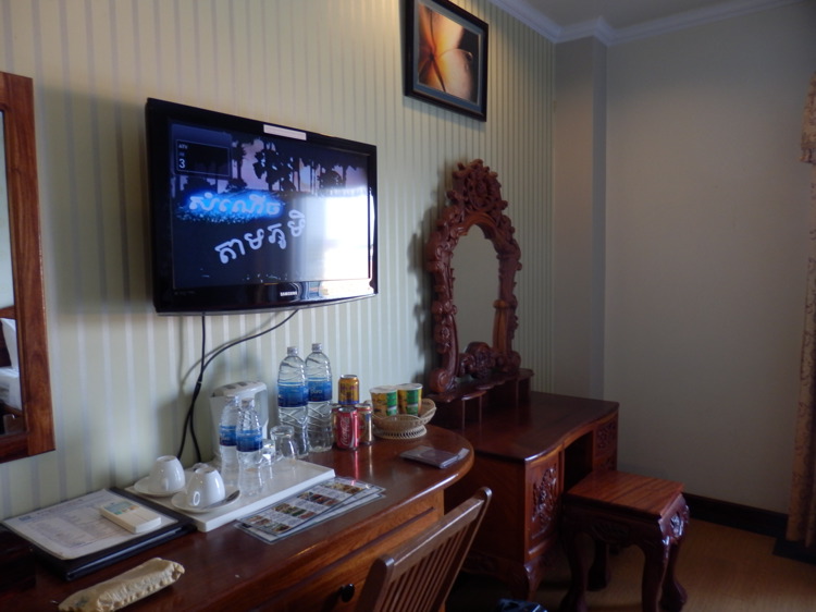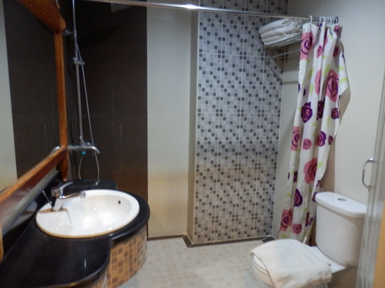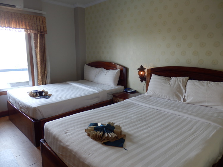 Hoch aufragendes Hotel auf der anderen Flußseite. Recht vollgestellte Zimmer, aber mit zwei großen Betten, Kühlschrank, Tisch, TV, Wasserkocher, Spiegel, Fön usw. komplett ausgestattetes 3-Sterne Hotel.