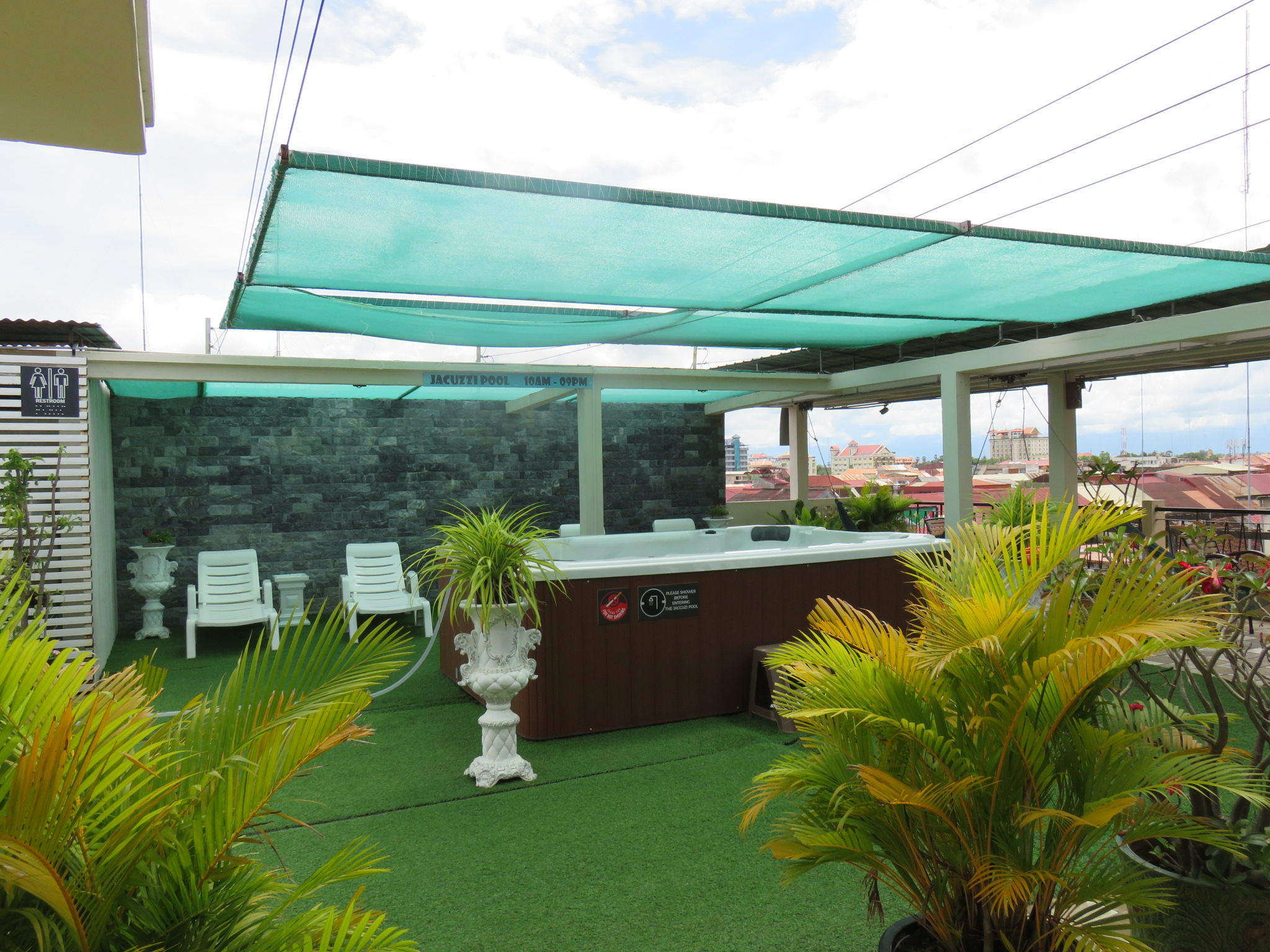 Schöne große Dachterrasse mit Restaurant und Yacuzzi.