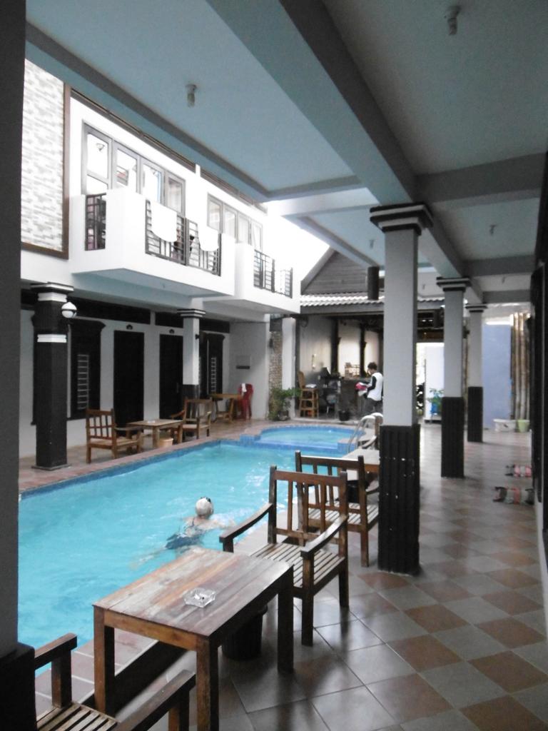 Rund um den kleinen Pool liegen die AC-Zimmer. Alle sehr modern eingerichtet mit ebensolchen Bädern (Warmwasser). Schrank, Bett, Schreibtisch, Flatscreen.