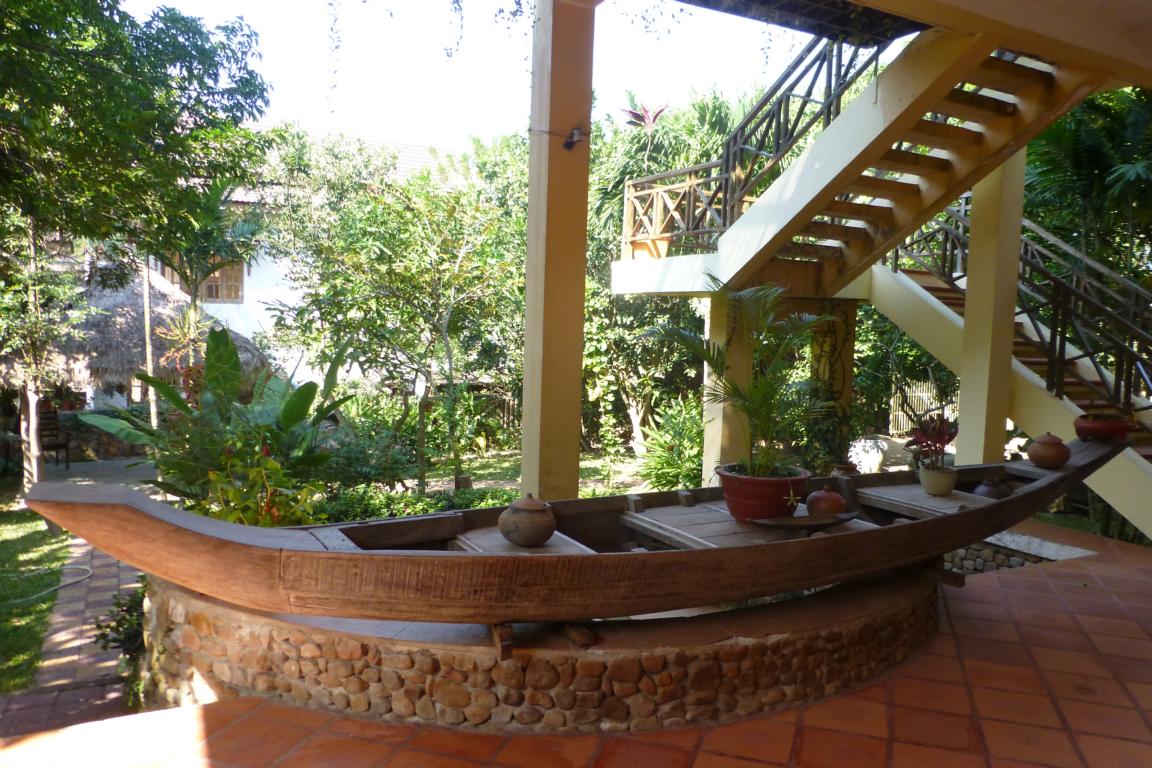 The Boathouse: an der Straße das Steinhaus, im rückwärtigen Garten ein tolles HolzhausAls wir (Andrea & Mark Markand) in den 1990er Jahren zum ersten Mal nach Angkor kamen, gab es kleine Holzhäuschen für den Ticketverkauf, der Lonely Planet warnte vor Baumfröschen und man konnte den Sonnenaufgang über Angkor Wat morgens tatsächlich noch mit ein ganz paar wenigen Frühaufstehern nahezu allein erleben. Seither zieht es uns immer wieder an diesen magischen Ort, der trotz steigender Besucherzahlen noch viel Geheimnisvolles birgt. Hier an dieser Stelle berichten wir euch von Neuigkeiten. Auch ihr könnt hier Kommentare mit Infos und Eindrücken posten: Gemeinsam wissen wir mehr.
