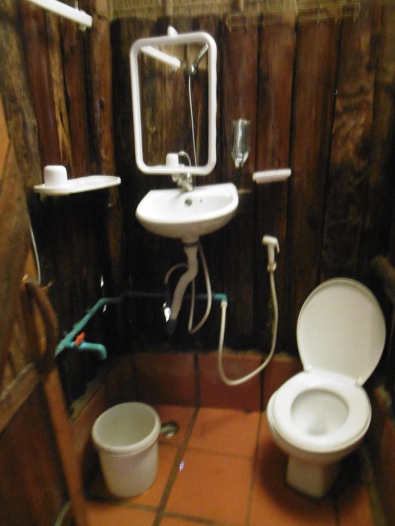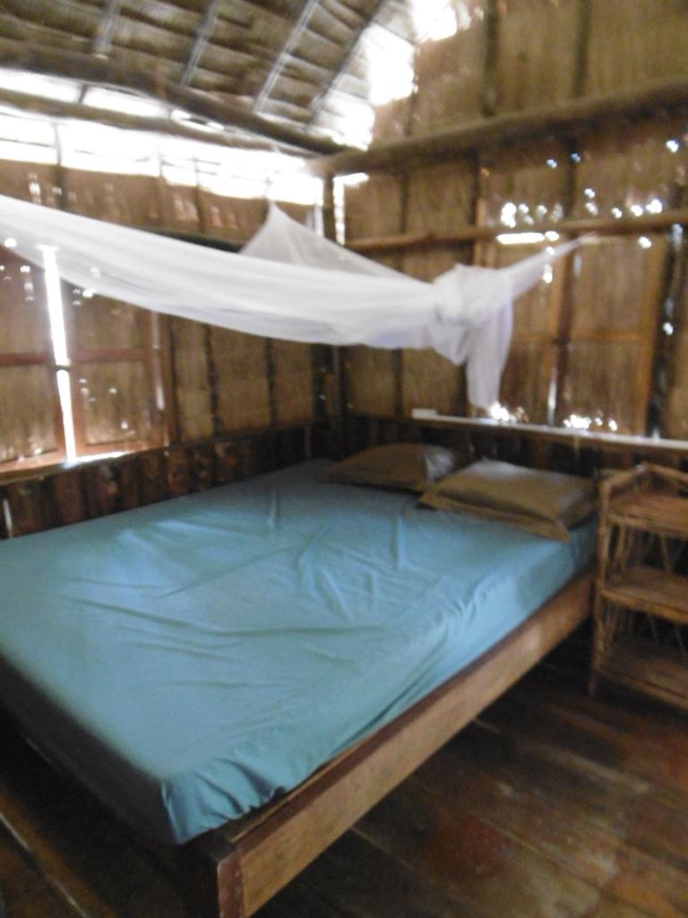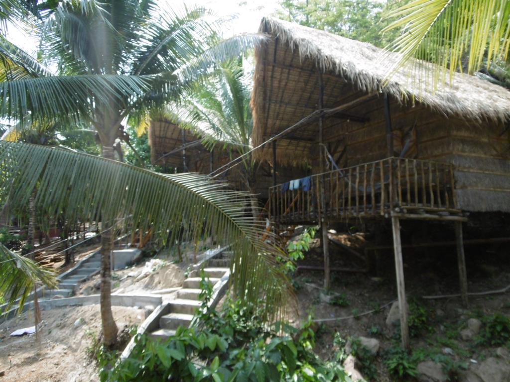 Hinter dem beliebten und lauten Restaurant gibt es ganz unterschiedliche Übernachtungsmöglichkeiten. Schön sind die etwas weiter im Hang liegenden einfachen Holz-Mattenbungalows mit Bad und Terrasse.