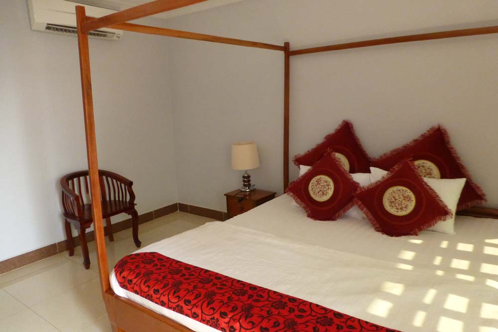 Moderne AC-Zimmer am Fluss. Helle Fliesenböden, großes Bett, Nachttisch, Ablage, Schrank und Flatscreen. Ebenso schöne Bäder mit Dusche und Warmwasser. Einige Zimmer mit Balkon zur Uferpromenade. Hippes Restaurant und Bar im Erdgeschoss