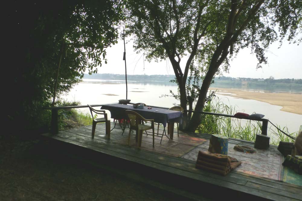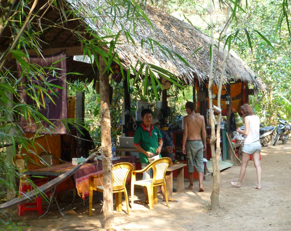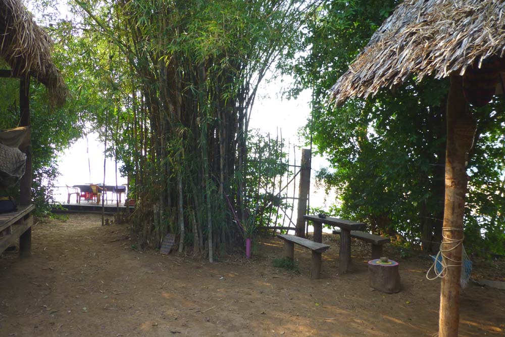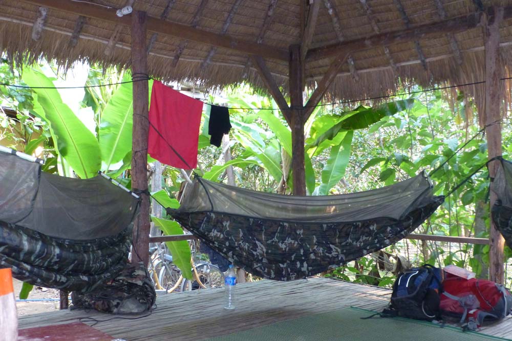 Auf der Mekonginsel Koh Pbain gelegene einfache Anlage. Unter Bananenstauden und zwischen Bambussträuchern stehen die beiden überdachten Holzplattformen, auf denen Matratzen liegen oder Hängematten gespannt sind (US$2-3 pro Person). Toller Blick von der Terrasse auf den Mekong. Einfaches Restaurant. WLAN.