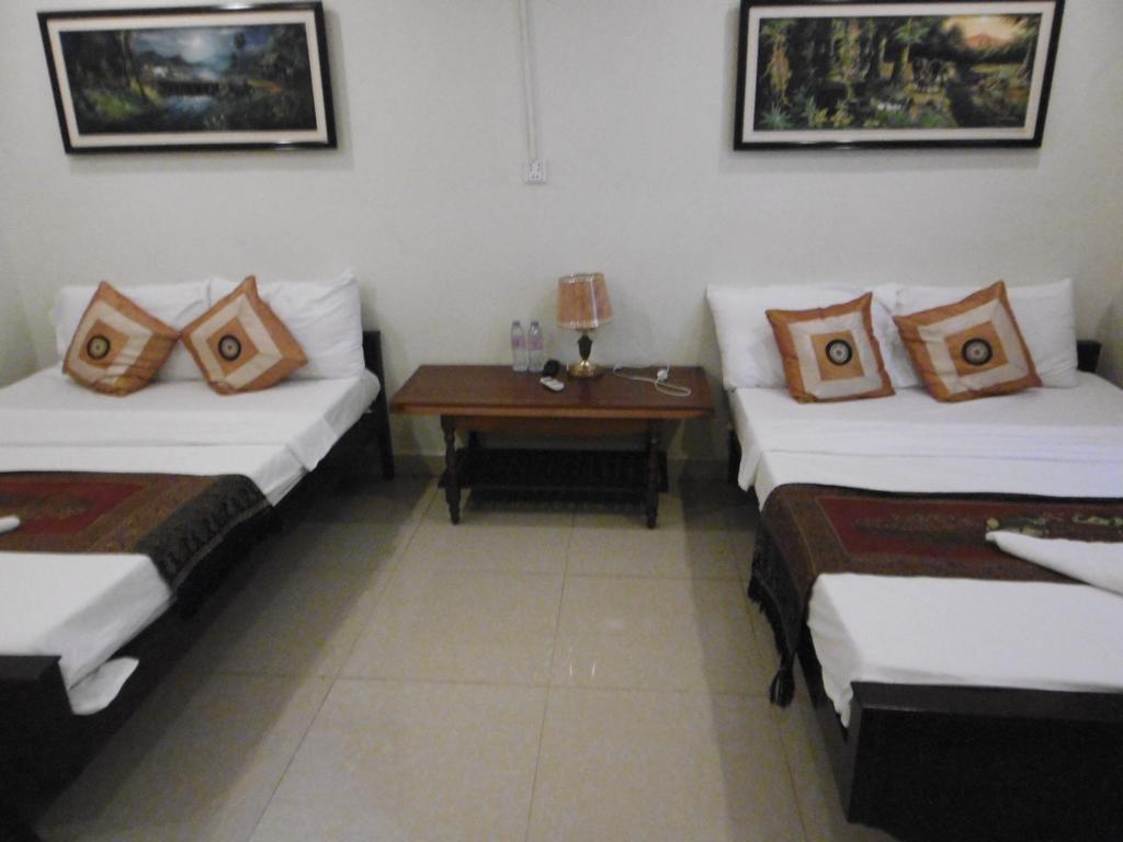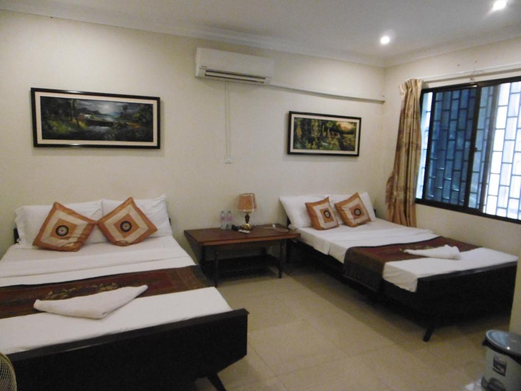 Die Zimmer im Obergeschoss sind gefliest und ordentlich möbliert, teils Schrank, Schreibtisch und Stühle, TV. Besser sind die Zimmer mit Außenfenster oder Balkon.