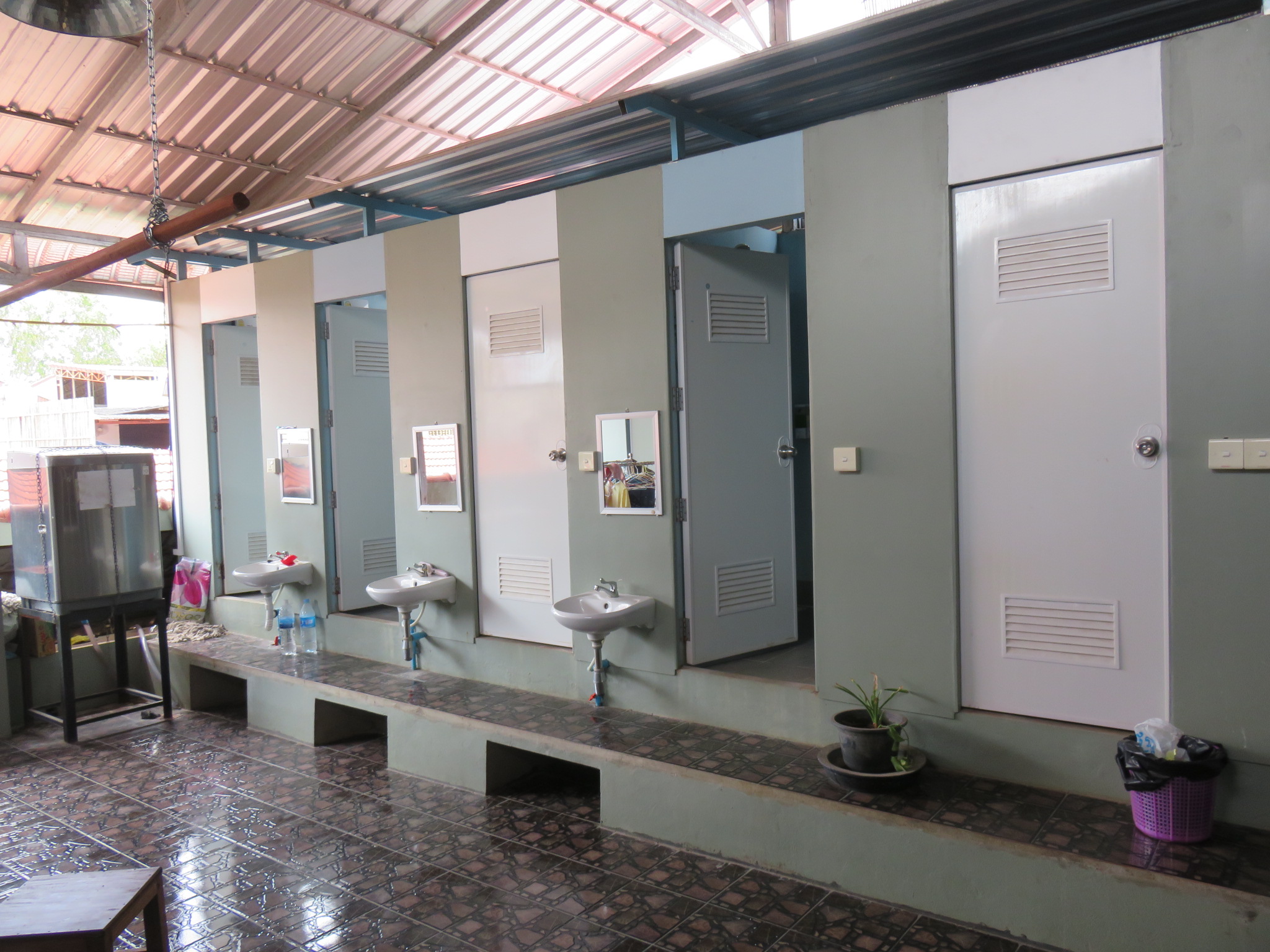 Auf der oberen Etage gibt es außerdem noch einfache DZ mit Blick auf die Dachterrasse. Dort befinden sich auch die abschließbaren Einzelduschen, Toiletten und Waschbecken.