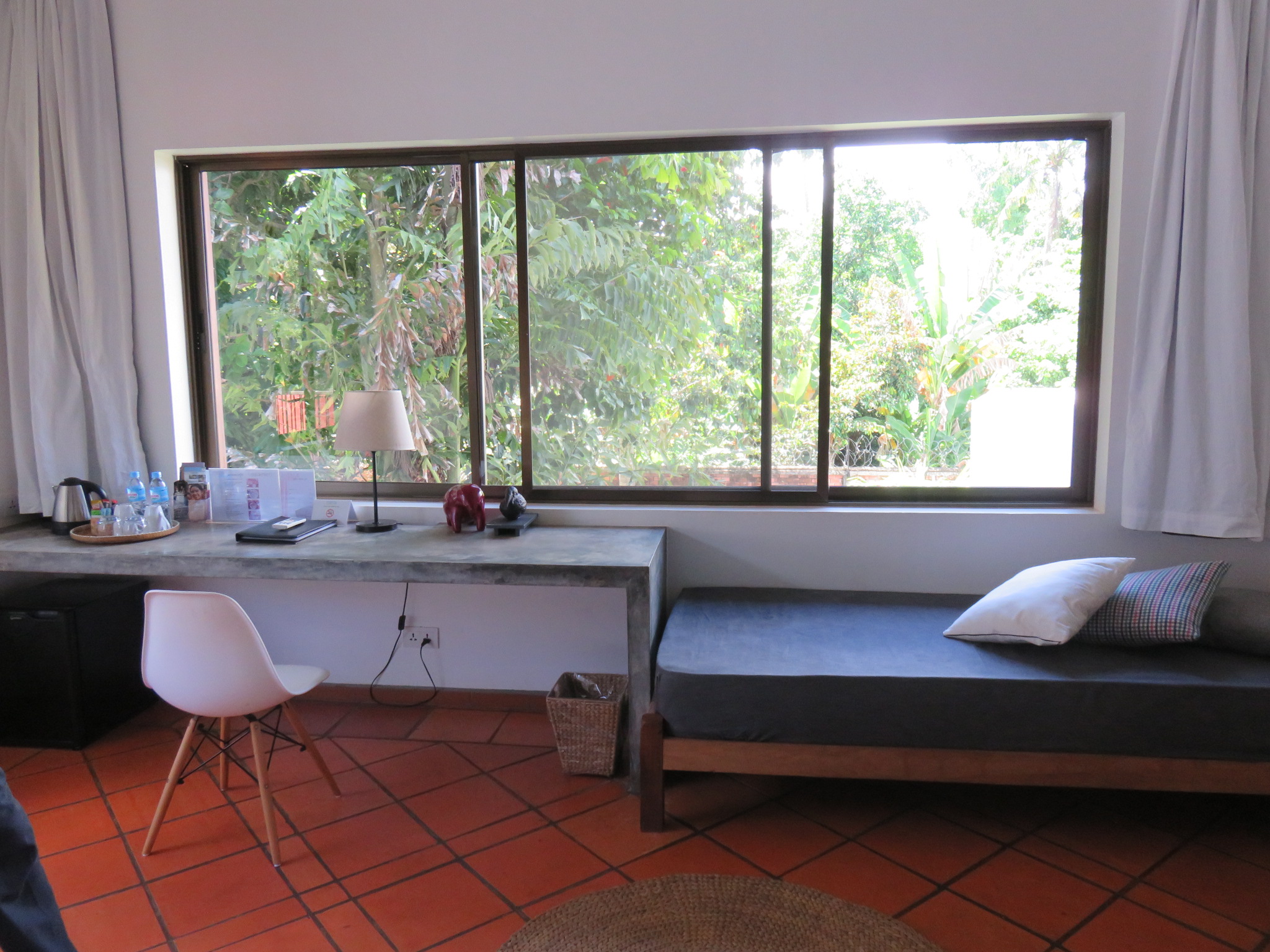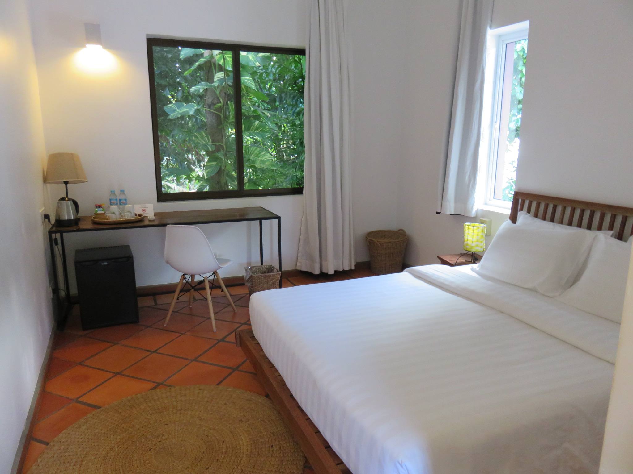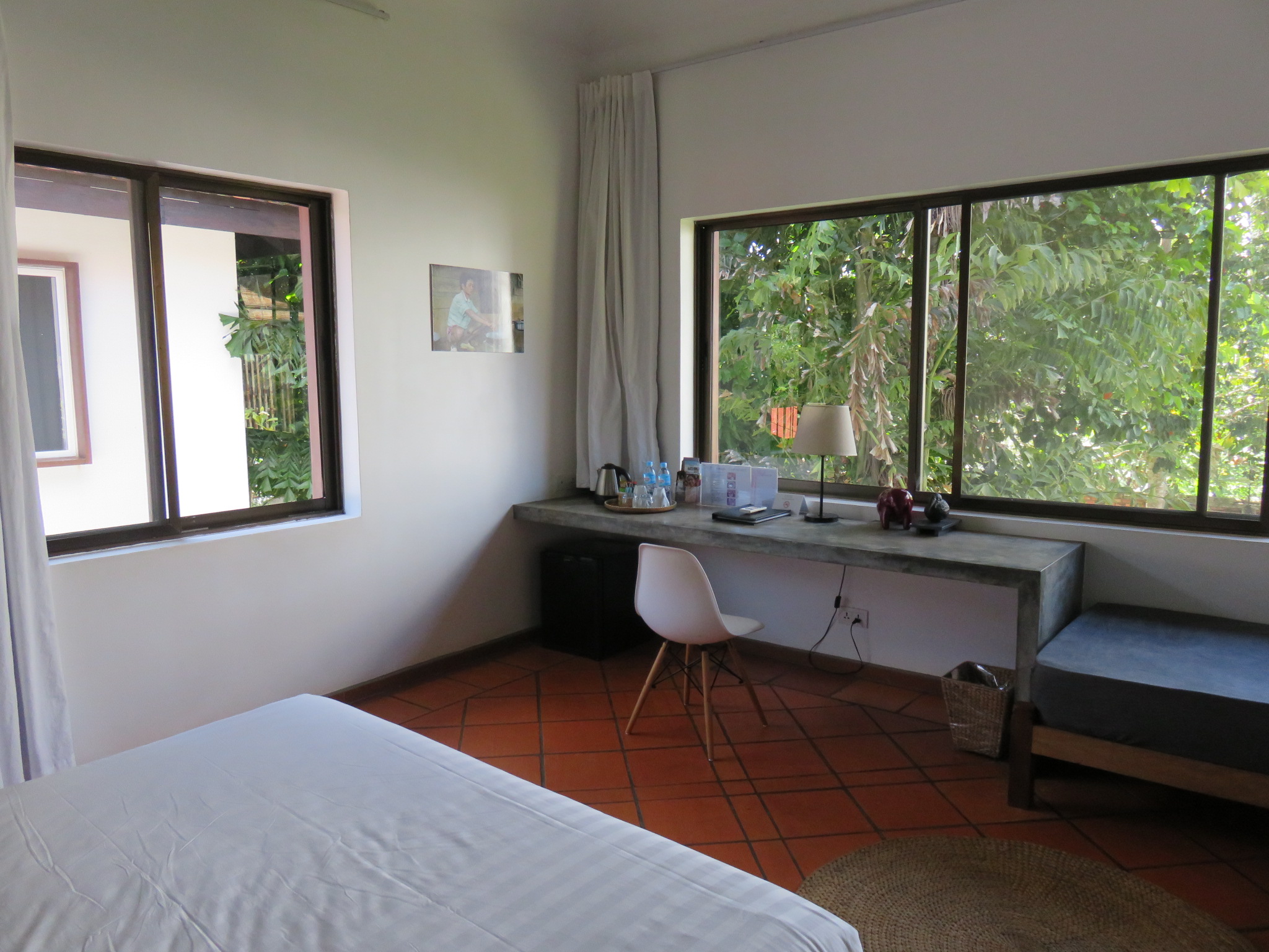 Die Lage etwas außerhalb am Fluss ist toll. Inmitten einer großen gepflegten Gartenanlage werden 6 sehr schöne AC-Zimmer vermietet. Unbedingt mehrer Zimmer ansehen: alle sind unterschiedlich, es gibt Erdgeschosszimmer mit Terrasse oder Zimmer im Obergeschoss mit großen Fensterflächen.