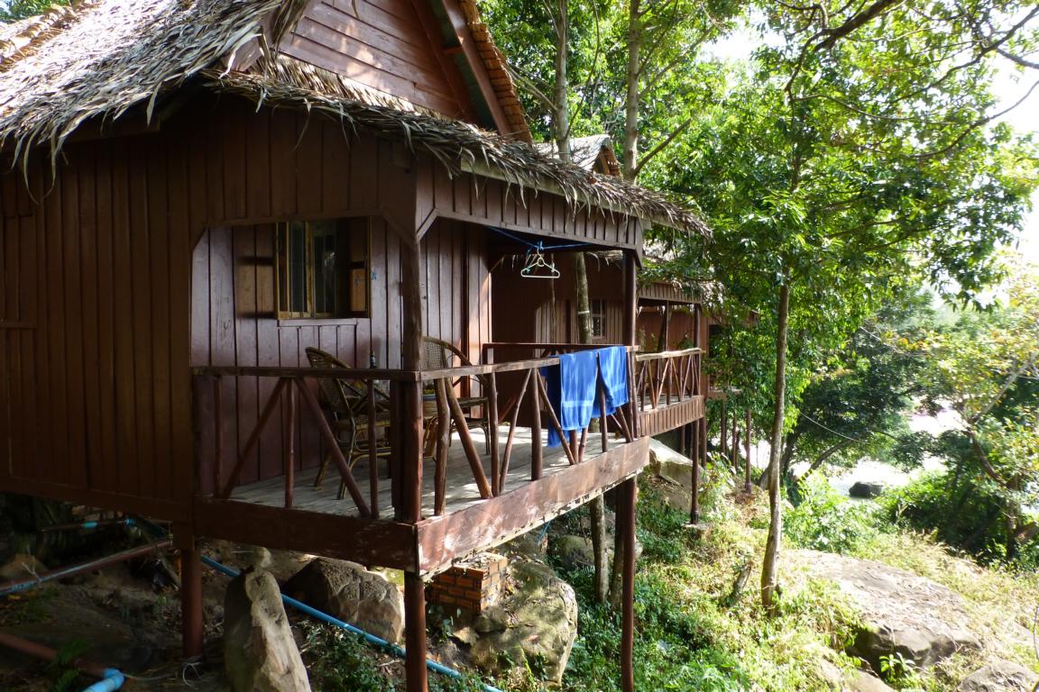 Der Name Resort ist ambitioniert: tatsächlich handelt es sich um ganz einfache Holzhütten mit Bad. Toll ist die Lage: sie stehen auf einem Felsen, von dem man einen wunderbaren Blick aufs Meer und - von manchen - auf den Otres I Strand hat.