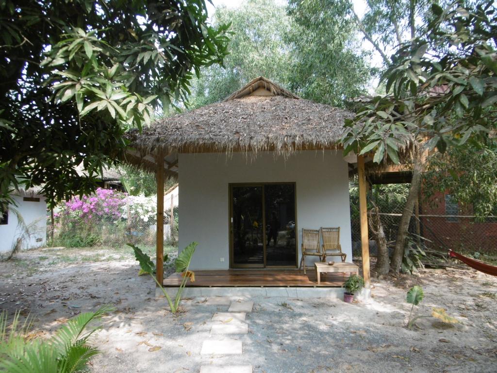 Schöne Bungalows, weitläufig unter Bäumen verteilt. Moderner Look in grau-weiß-Tönen. Ebensolche Bäder, alle mit Warmwasser.