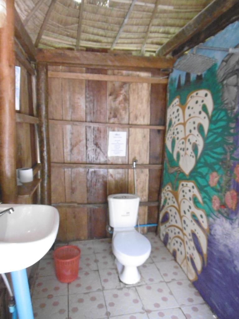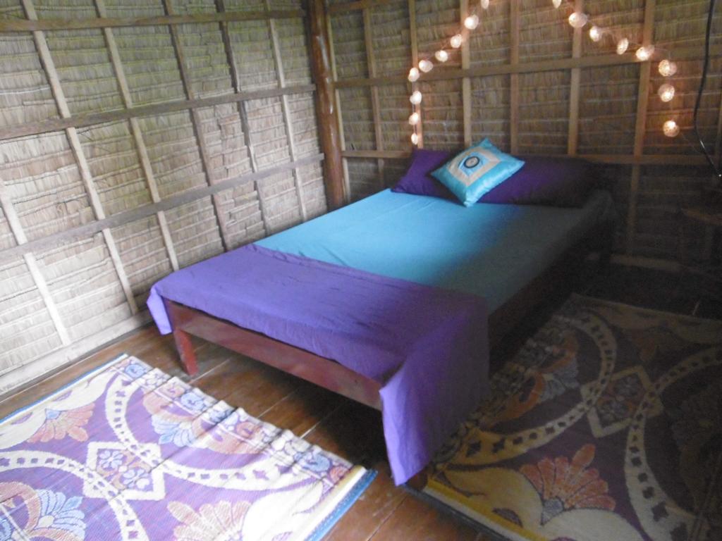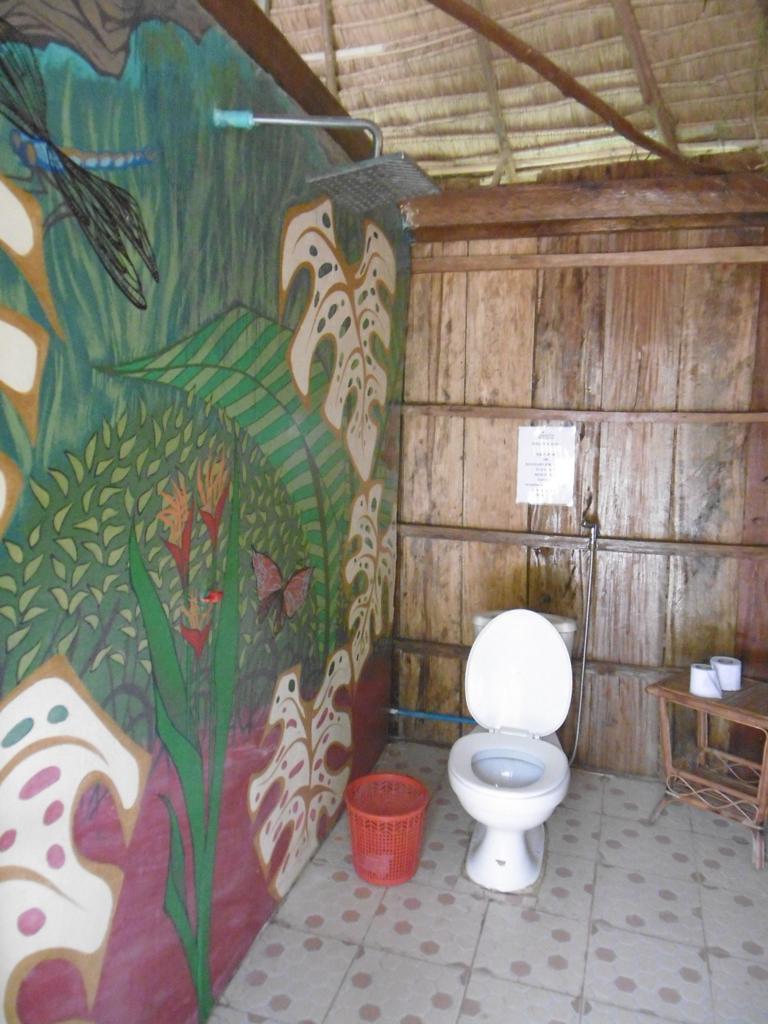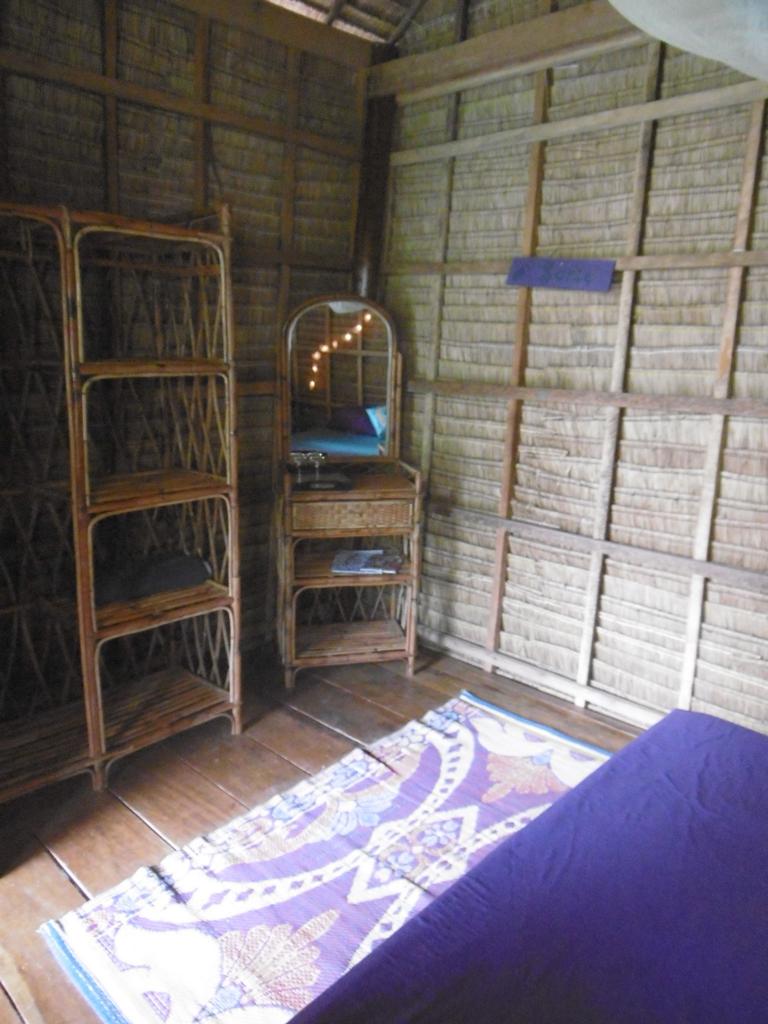 Die Bungalows sind einfach, aber mit Liebe zum Detail ausgestattet. Bett, Ablage, Ventilator, alle mit Gemeinschaftsbad.