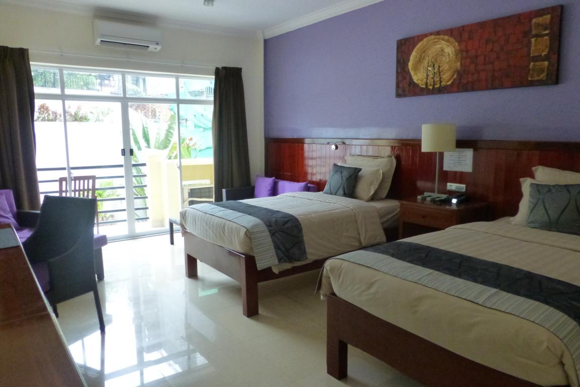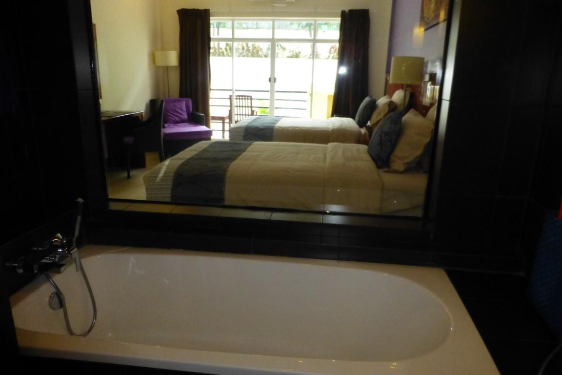 Hier wohnt man nicht nur in Strandnähe, sondern auch luxuriös: große AC-Zimmer, die modern ausgestattet sind. Edel wirkt die farbig gestrichene Wand; Sitzmöbel, Ablageflächen, TV und Kühlschrank vervollständigen das Zimmer. Ebenso moderne Bäder mit Glaswand zum Zimmer. Ab US$32 pro Nacht.