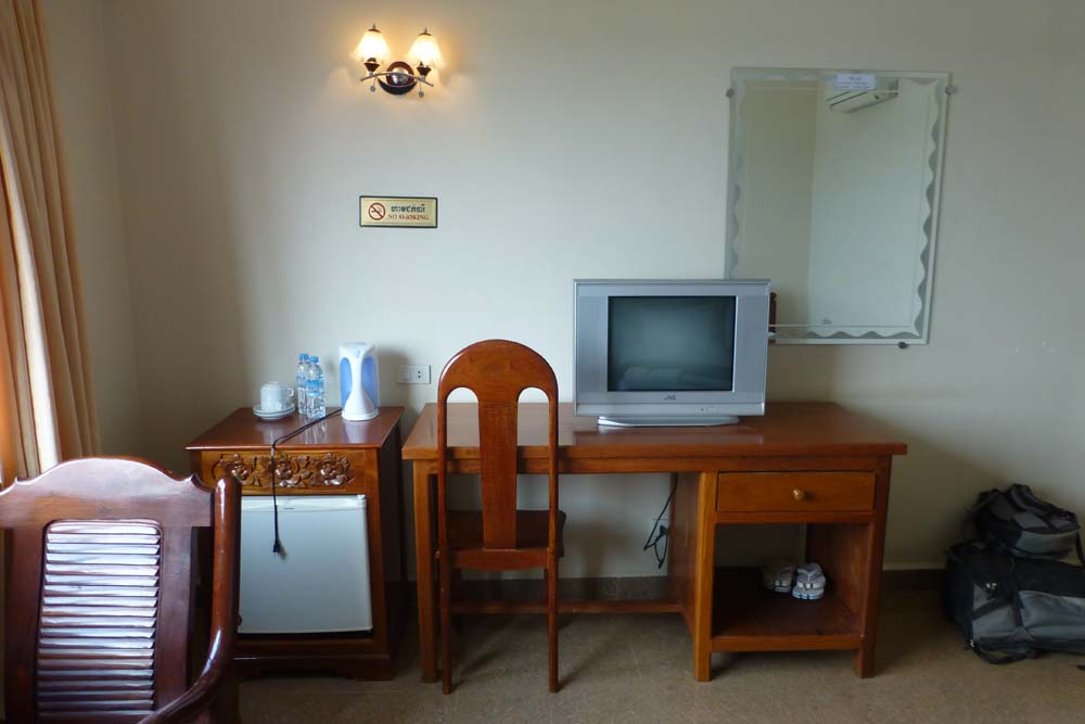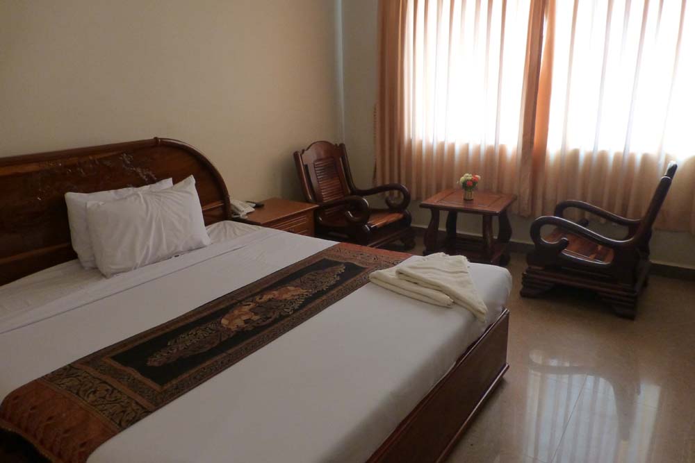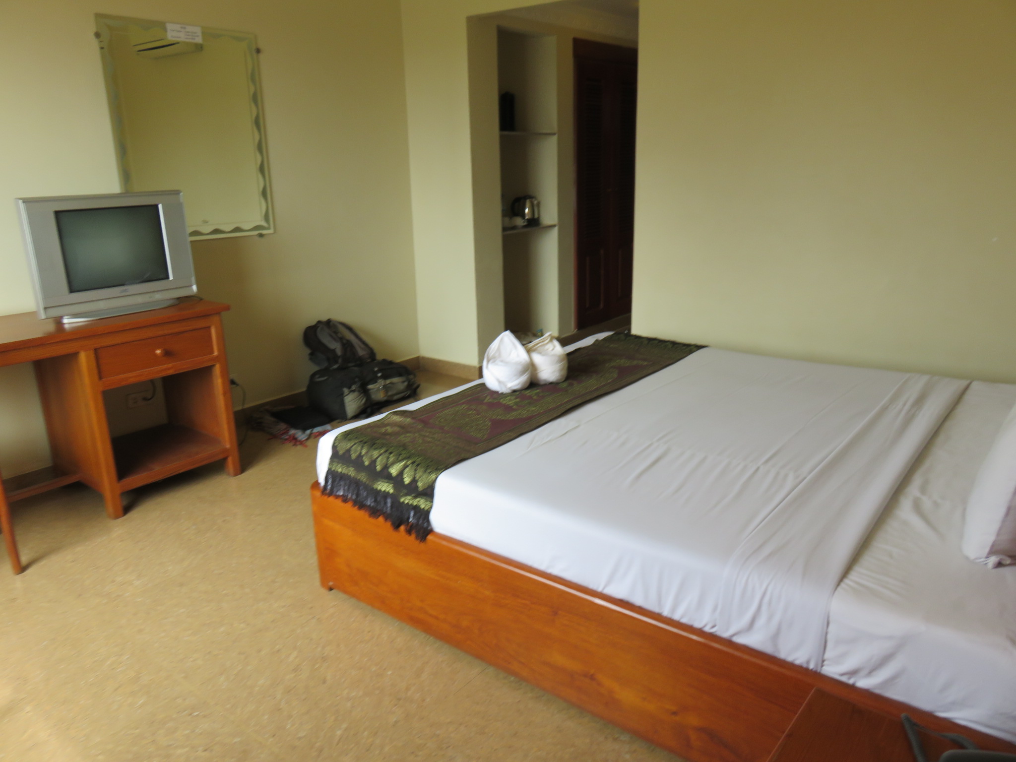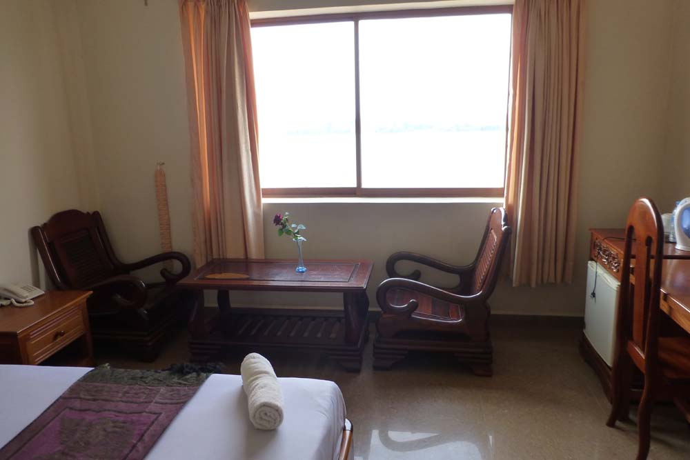 Bestes Haus in der Stadt: Nicht nur die Lage am Flussufer ist toll. Die AC-Zimmer sind sauber und mit vielen Holzmöbeln bestückt: Wahlweise ein oder zwei Betten, Schrank, Sitzgarnitur, Schreibtisch, Kühlschrank, Wasserkocher und TV. Bad mit Badewanne. Die Doppelzimmer kosten US$17, mit Flussblick US$20.