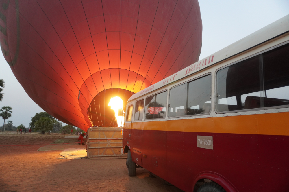 Noch fahren Ballons über Bagan - doch oft sind es gerade mal 1-2, die in die Luft steigen. Die weltweit bekannten Bilder zahlreicher Ballons direkt über den Tempeln sind Geschichte, denn es darf nicht mehr direkt im Tempelgebiet gestartet oder gelandet werden und auch die niedrigen Flüge sind verboten. Dennoch macht eine solche Fahrt sehr viel Spaß und bietet einen anderen Blick auf die Welt. Die Piloten sind nach westlichem Standard ausgebildet, das Equipment ist sehr gut gewartet und das Team eingespielt und professionell.