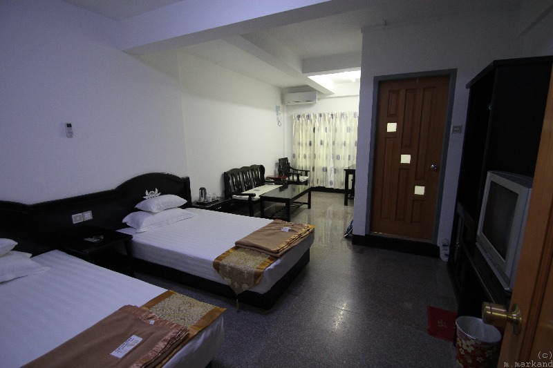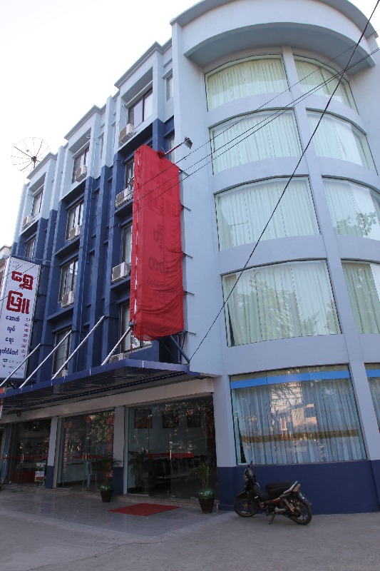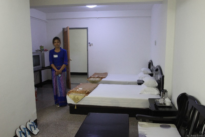Das Hotel nennt sich nun birmanisch "Shwe Phyu"-Hotel und ein Blick auf das Schild und in die Hotel-Lobby lassen ahnen: