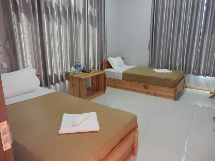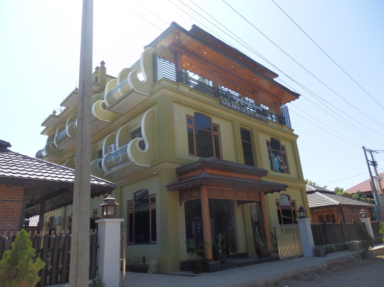 "Viele Hotels wurden kürzlich eröffnet oder befinden sich in Bau. Wir entschieden uns für das Golden Guest Hotel (Corner of Aung Tha Pyay & Thein Ni Street, West Quarter, goldenguesthotelhsp@gmail.com), welches wir anderen Reisenden nur empfehlen können (gutes Preis-Leistungsverhältnis, schlichte, schöne Zimmer, Frühstück auf der Terrasse)."