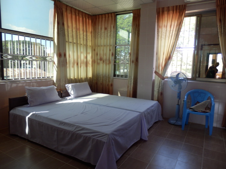 Hohes Hotel am Rande der Stadt. Einfache Zimmer, recht groß. Nicht gerade schön möbliert, aber funktional.