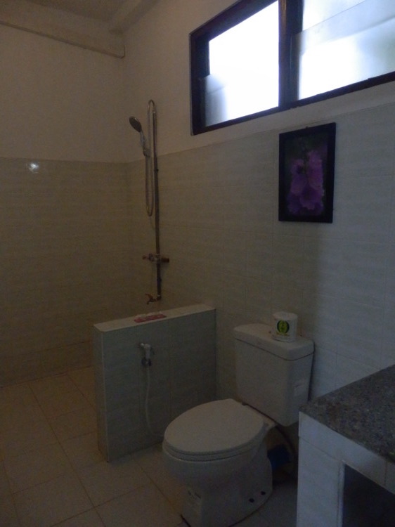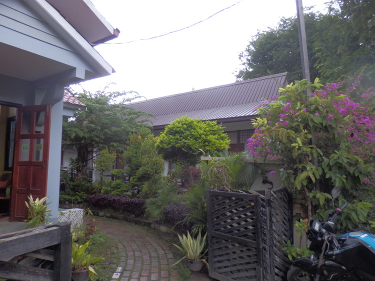 Reihenbungalow mit sieben einfachen etwas dunklen Zimmern, die Balkone davor liegen alle zum kleinen Garten hin. Alle mit Ventilator für US$20, in der Nebensaison US$2 Rabatt,