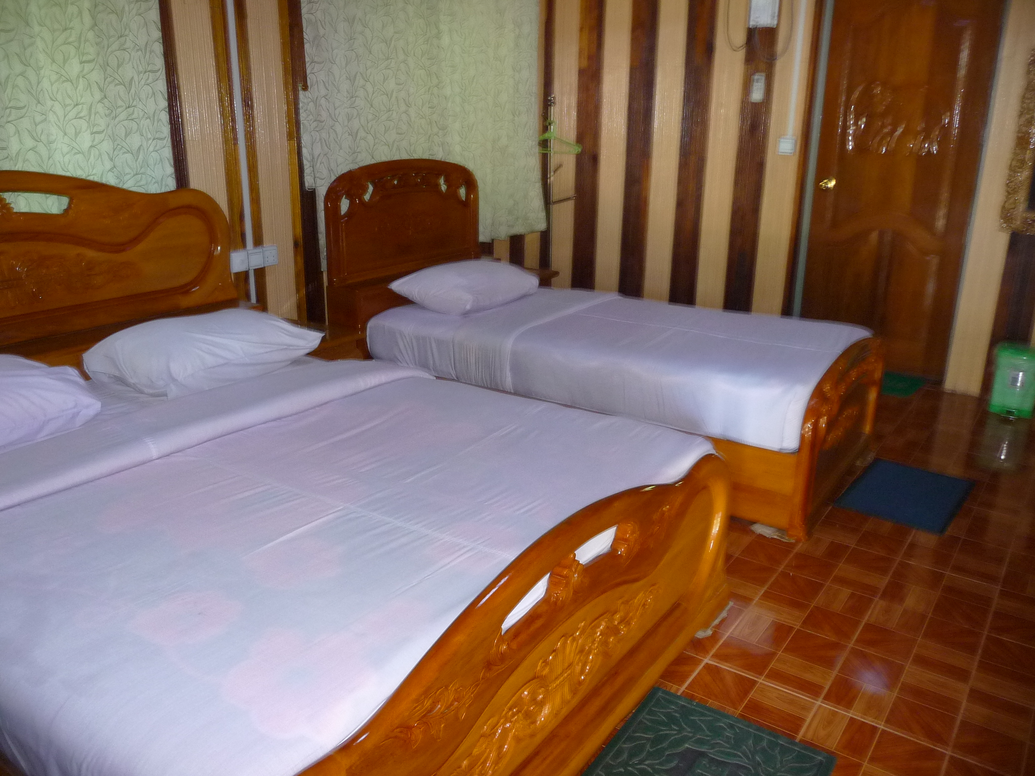 Empfehlenswertes Haus am Yangon-Mandalay Highway gelegen, etwa 2 Kilometer außerhalb des Zentrums. Es gibt Zimmer im zweistöckigen Gebäude oder Zimmer im Bungalow-Stil im rückwärtig gelegenen Garten. Die Einrichtung ist identisch: Doppelbett plus Einzelbett, TV, Kühlschrank und Bad. Sauber mit Fliesen- oder Holzboden und Holz-Wandverkleidungen. WLAN.
