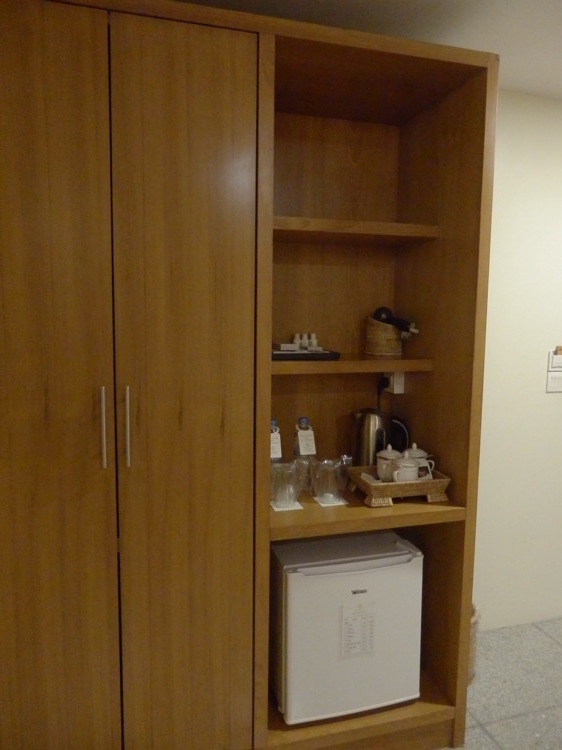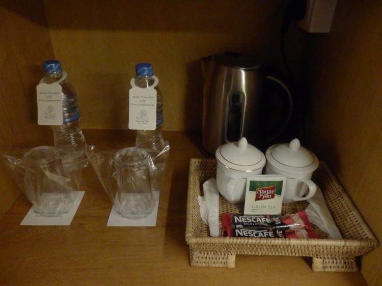 Wasserkocher, Fön, große Bäder, Schreibtisch.