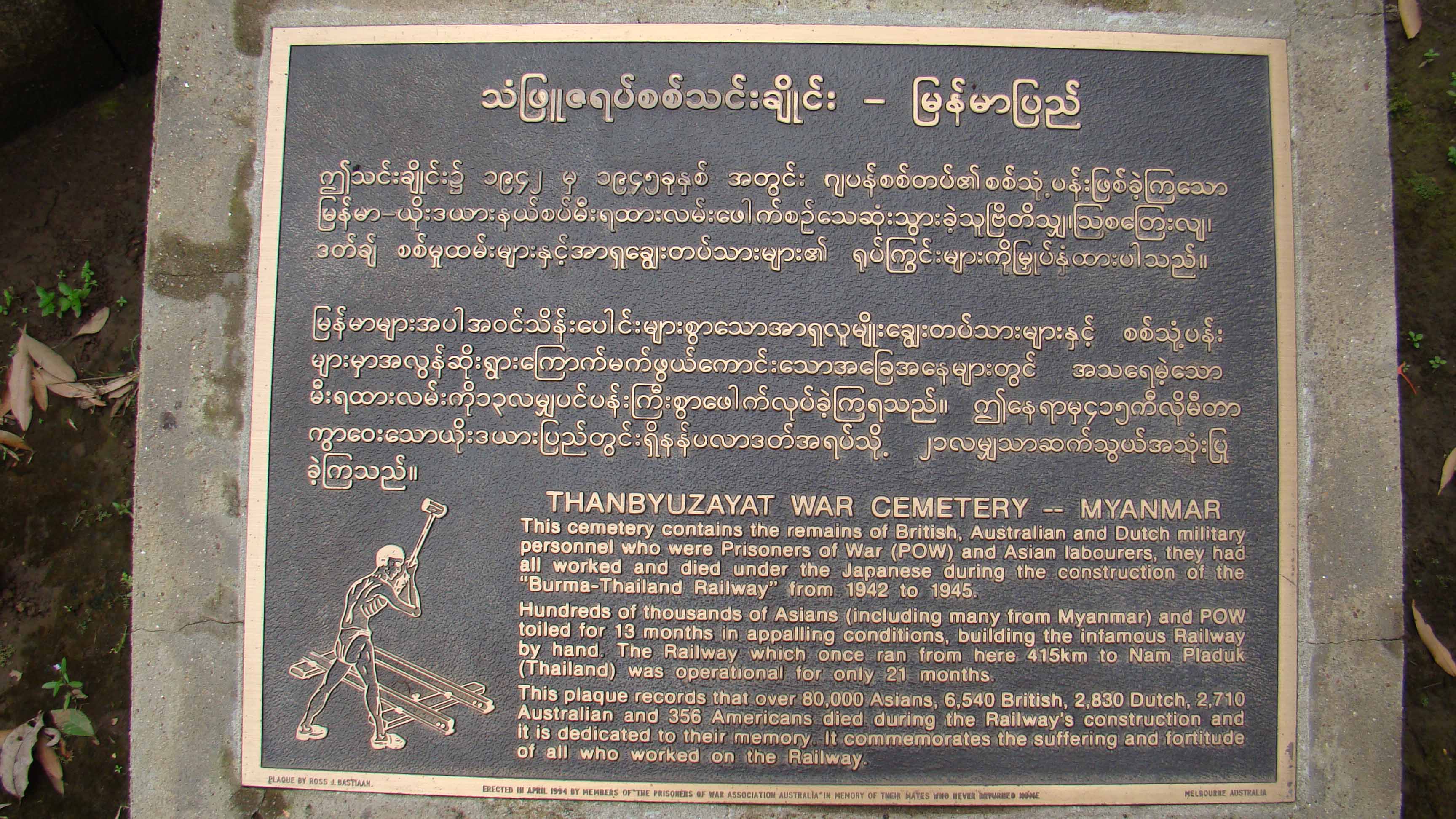Die 1946 von Aung San eingeweihte Anlage – sie liegt etwa 800 Meter westlich des Uhrenturms von Thanbyuzayat bzw. in Richtung Kyaikkami – umfasst exakt 3771 Gräber von alliierten Kriegsgefangenen die beim Bau der Bahnlinie von Thailand durch extrem unwegsames Terrain nach Burma um das Leben gekommen waren und erinnert von ihrem Stil an den großen, bei Yangon liegenden Heldenfriedhof Htaukkyant. Die meisten Opfer waren Briten, doch auf den Grabsteinen lassen sich auch amerikanische, holländische und australische Namen entziffern. Betreut wird die Ruhe- und Gedenkstätte von der „Commonwealth War Graves Commission“ bzw. Mr. Thet Mon, der sich vor Ort um die Pflege der Gräber und Grünanlagen kümmert.