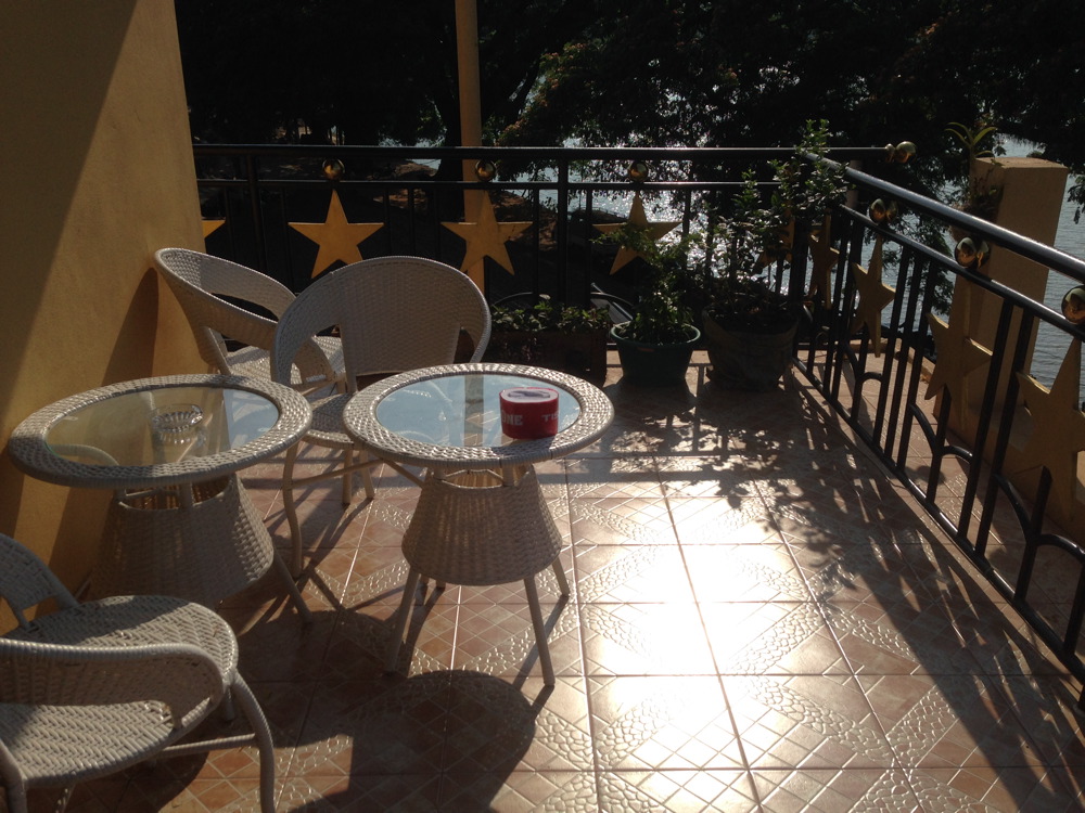 Sehr schöne Dachterrasse, auf der es Frühstück gibt. Und hier trifft man sich auch, um mit anderen Reisenden Erfahrungen und Geschichten auszutauschen. Es gibt Bier in Dosen und andere Softdrinks, ansonsten aber kein Restaurantbetrieb.