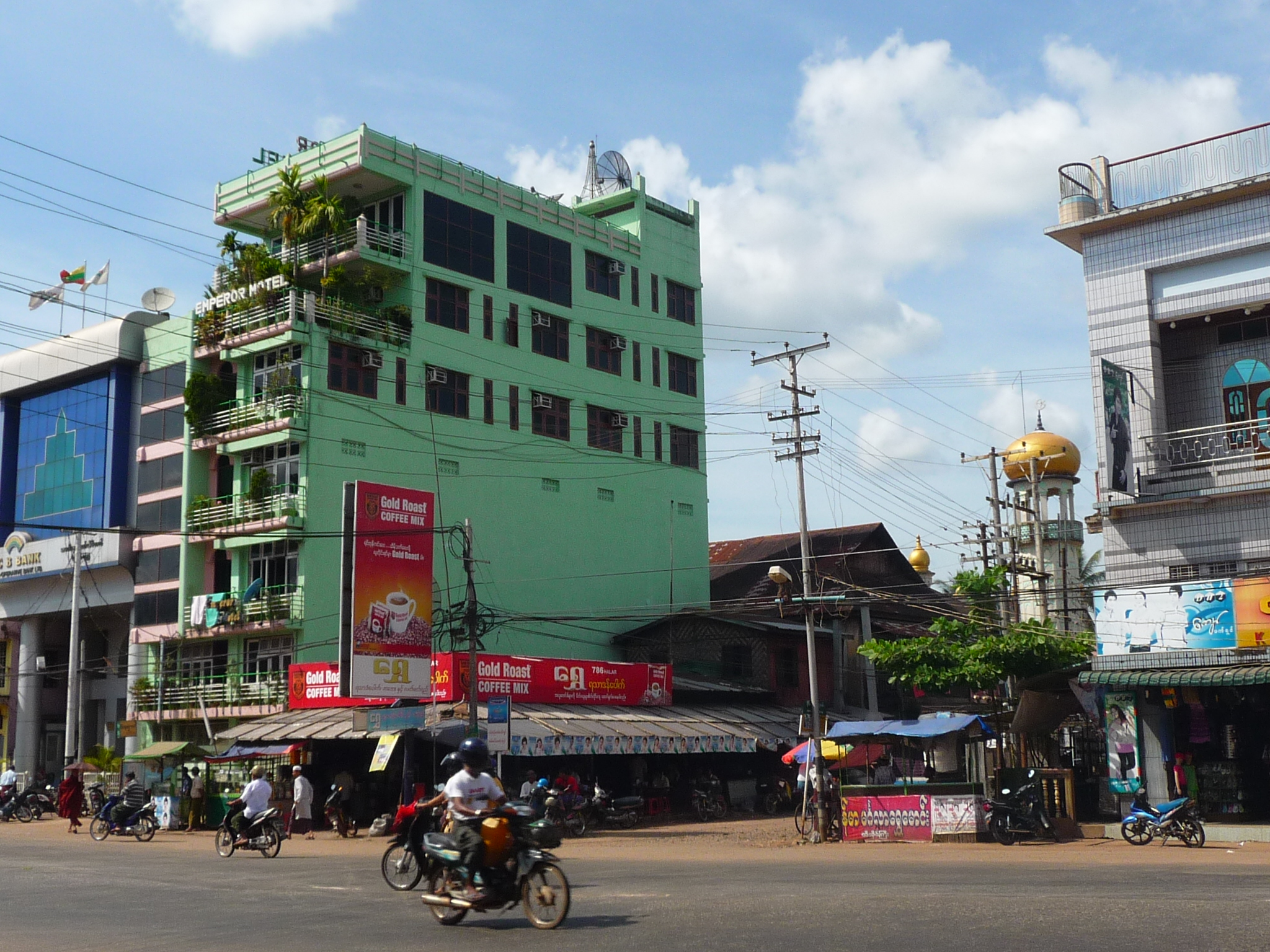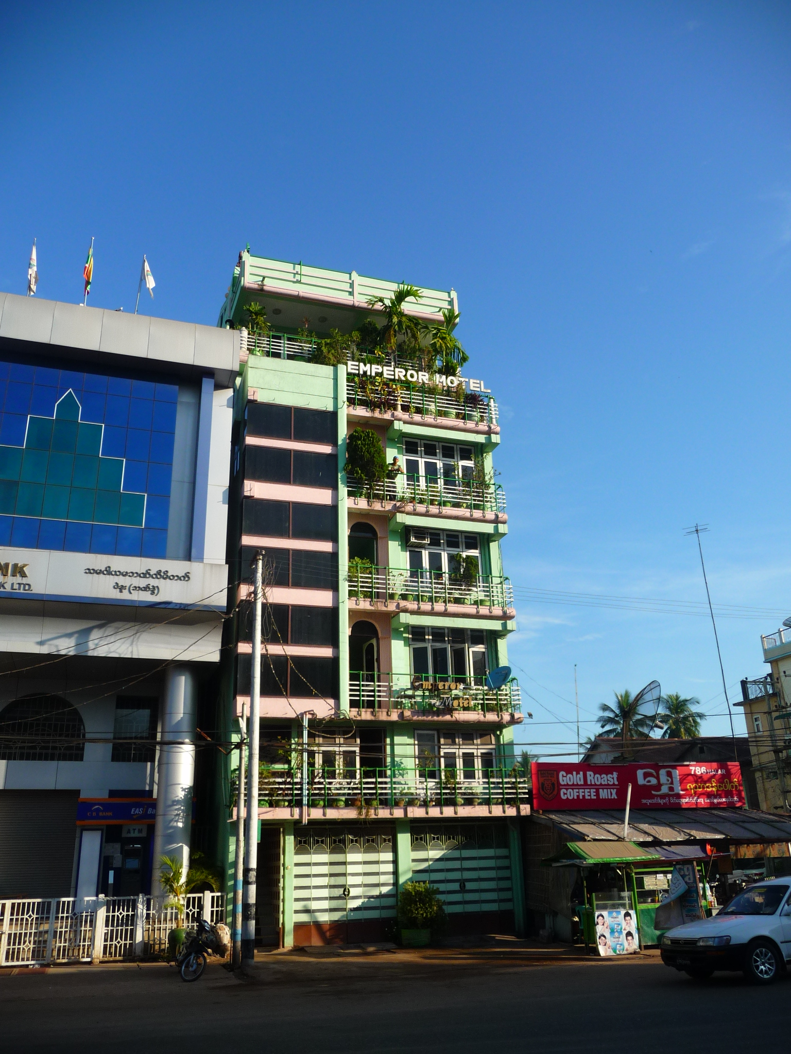 Das Emperor Hotel mit dem imposanten Namen thront an der Hauptstraße. Von den oberen Stockwerken und der Dachterrasse hat man einen tollen Blick auf Bago.