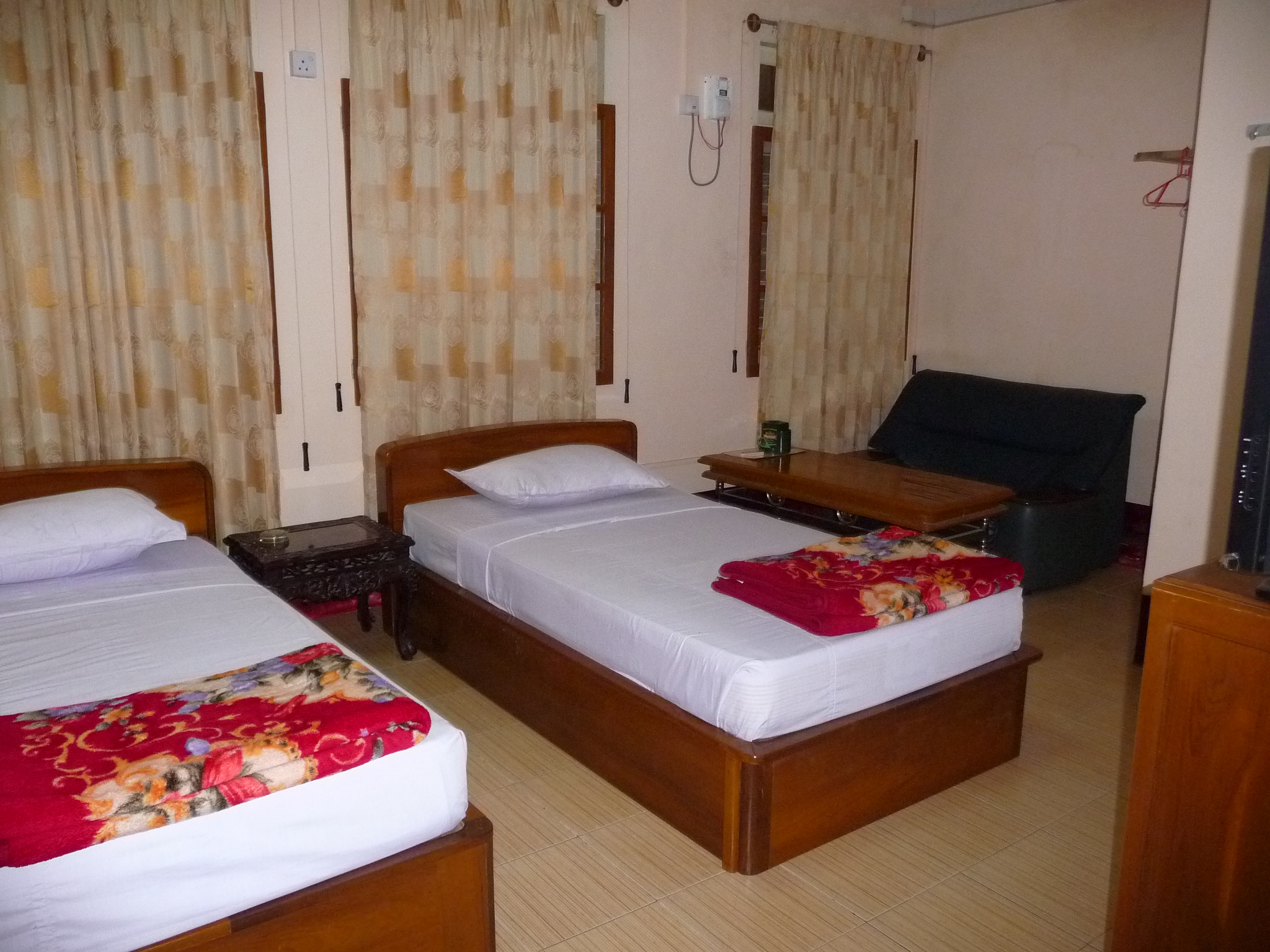 Für ausländische Gäste stehen die Zimmer im Erdgeschoss zur Verfügung: Groß und sauber, aber die Aussicht aus dem Fenster ist zugebaut.