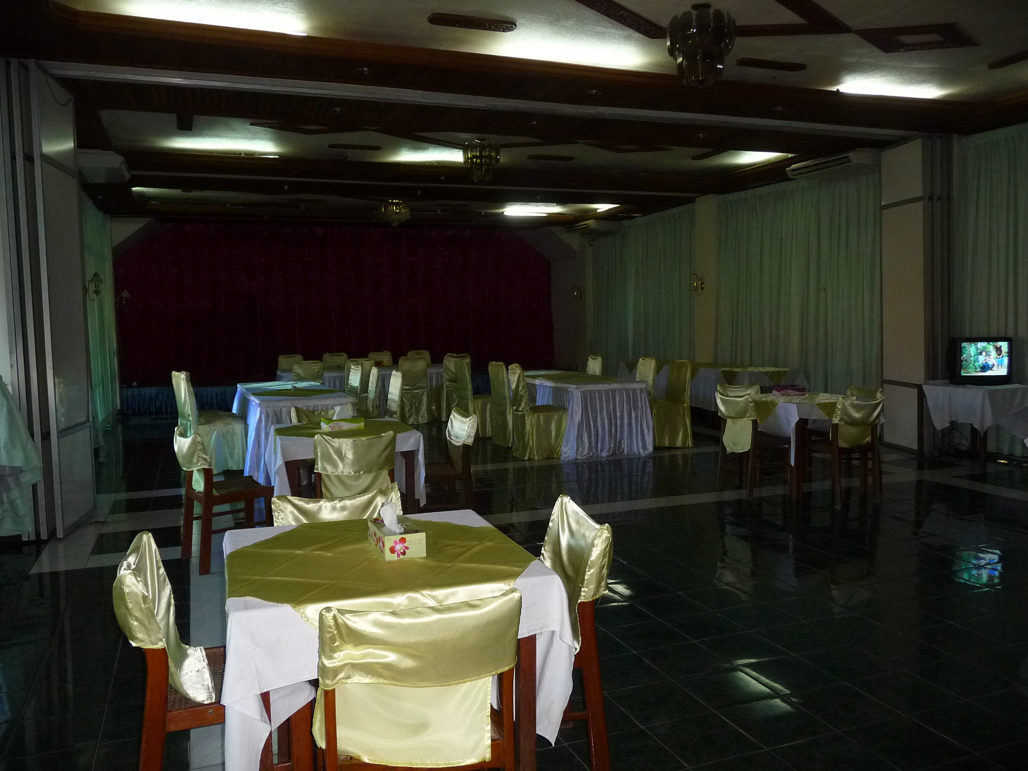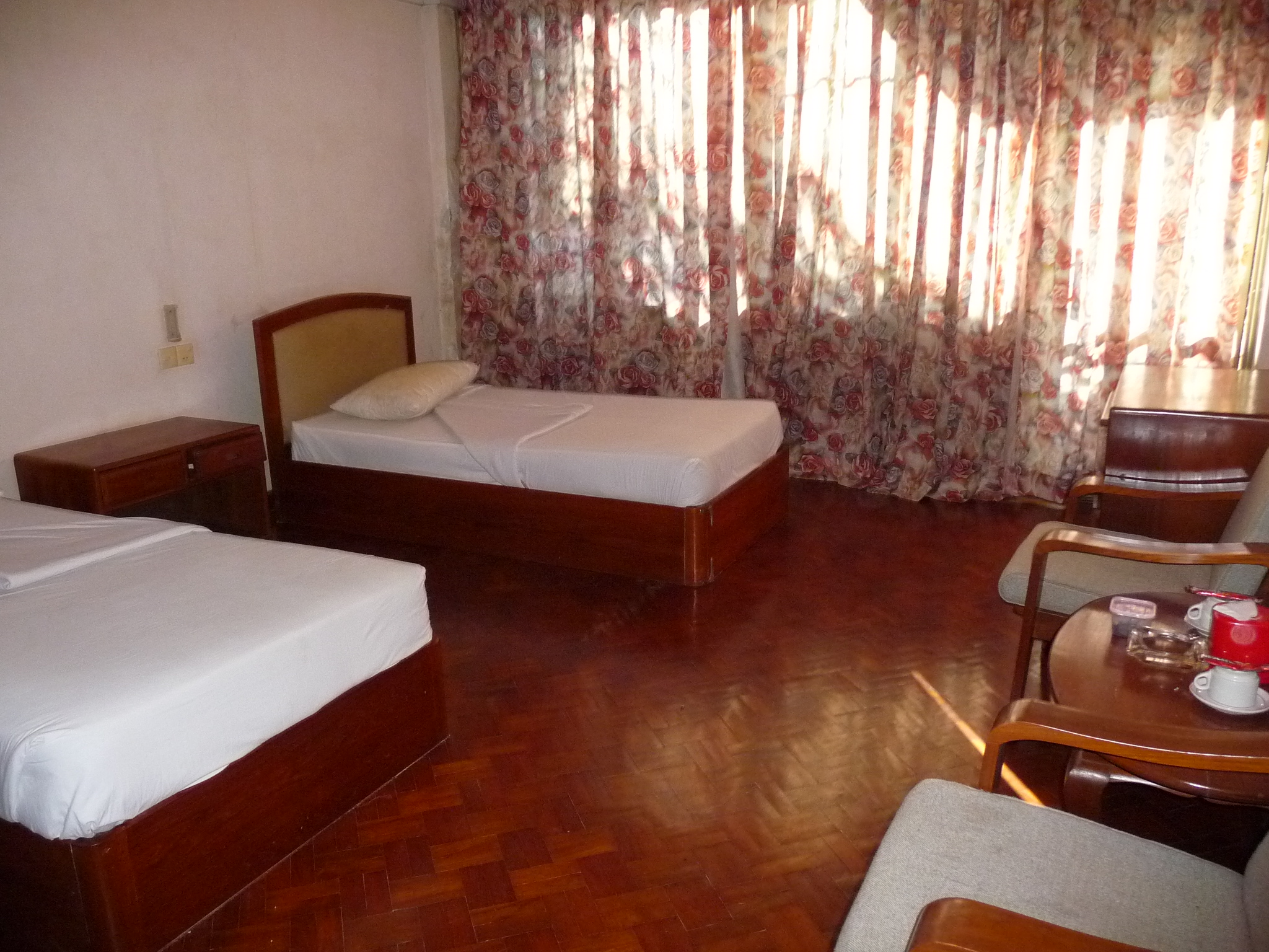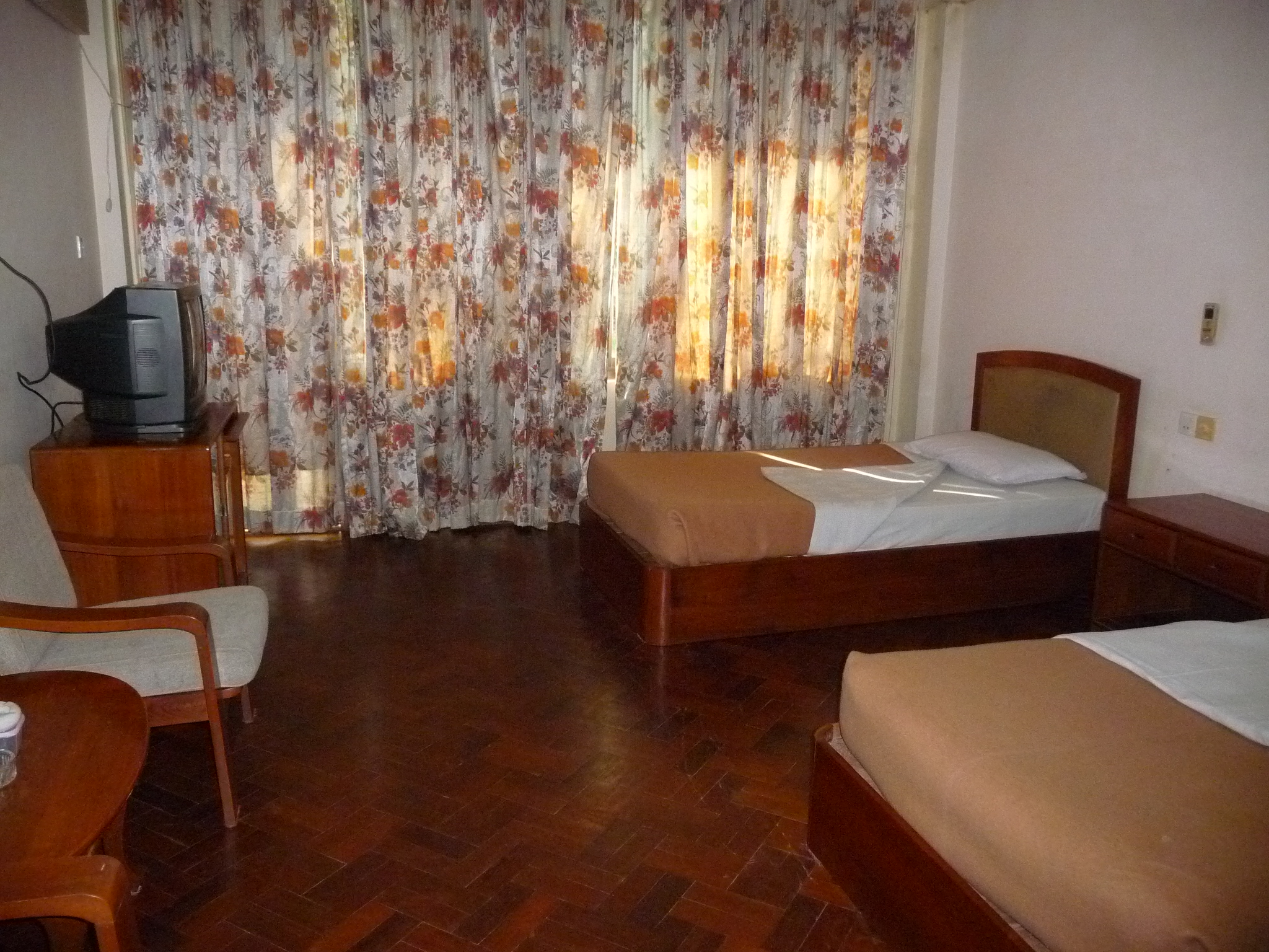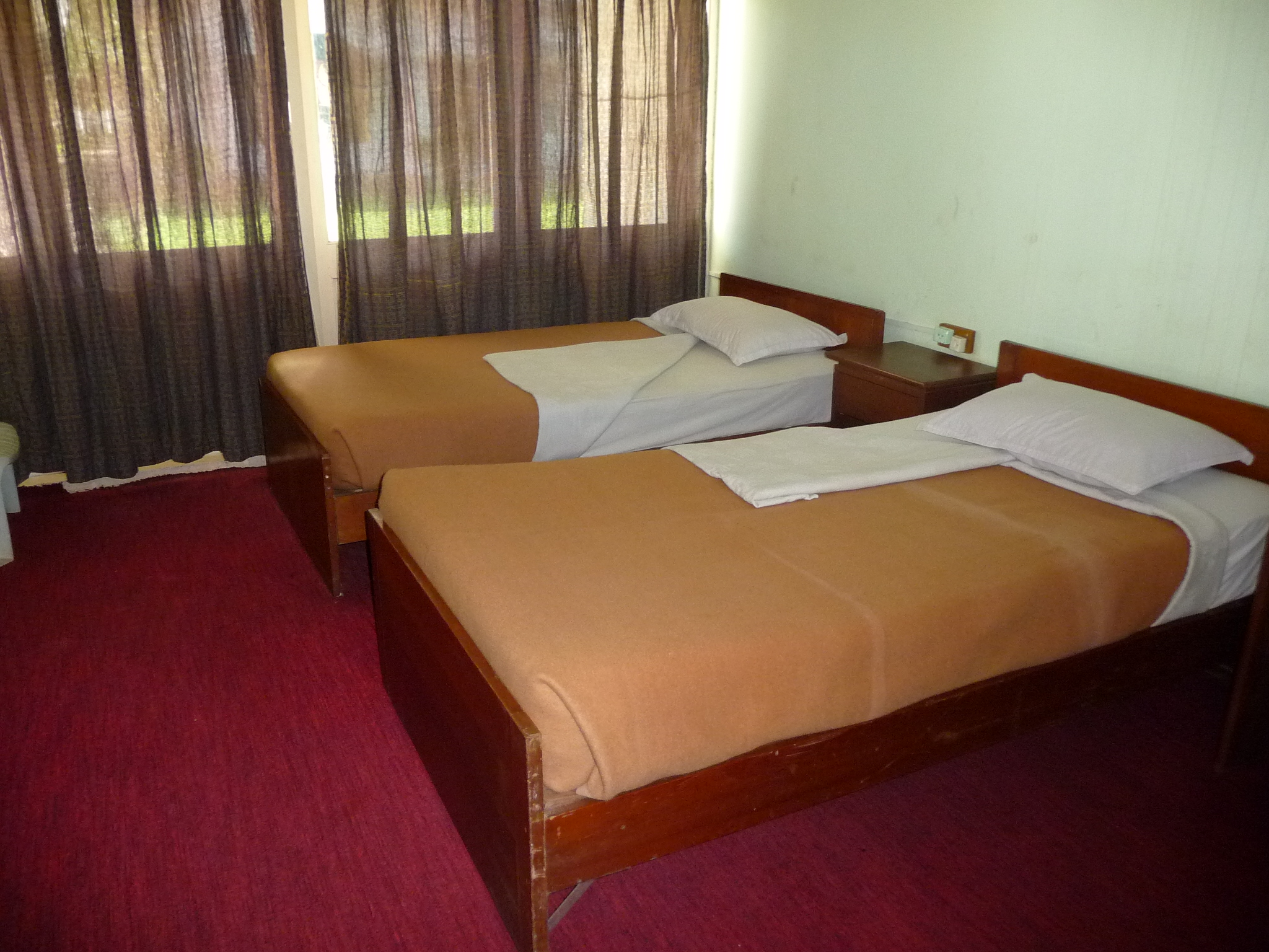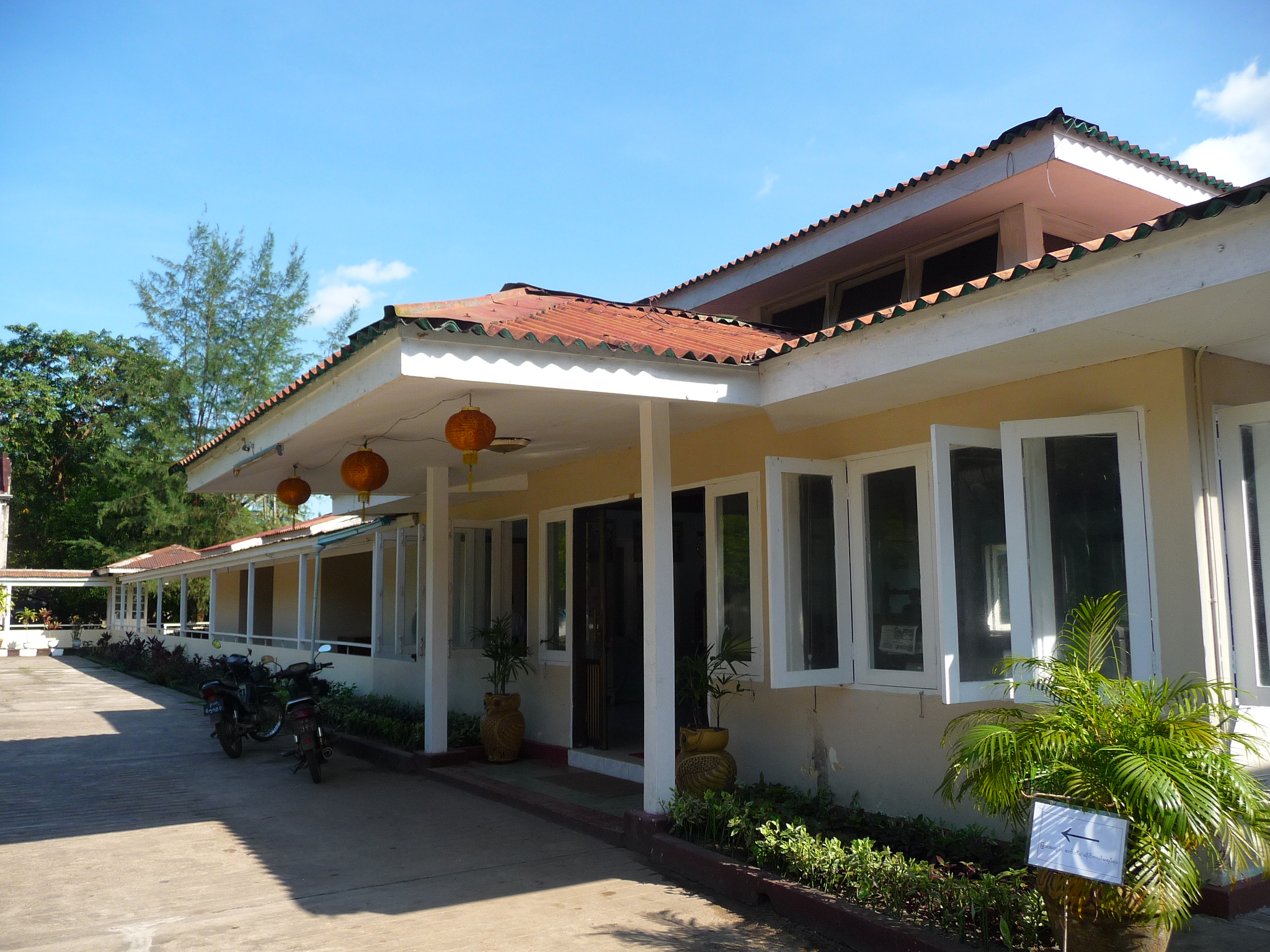 Ehemalig staatliches Hotel: 95 Zimmer ohne viel Charme, dafür mit viel Platz. Die Gebäude gruppieren sich um eine Gartenanlage.