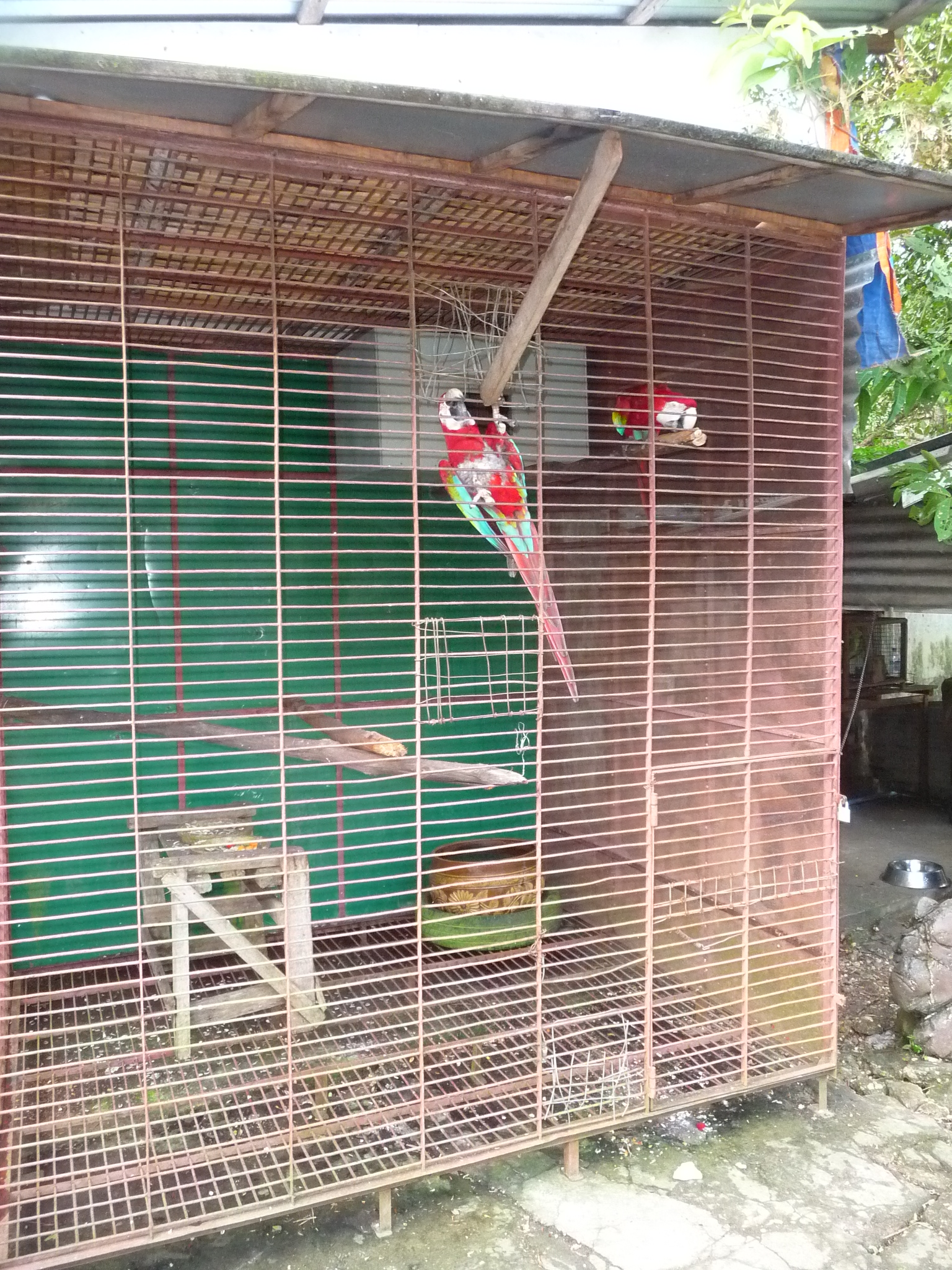 Außergewöhnlich sind nur die Tiere, die von der Familie gehalten werden. Im Innenhof und Garten stehen eine Menge Vogelkäfige mit sehr sehenswerten Papageien-Arten.