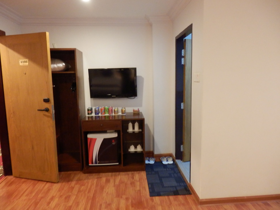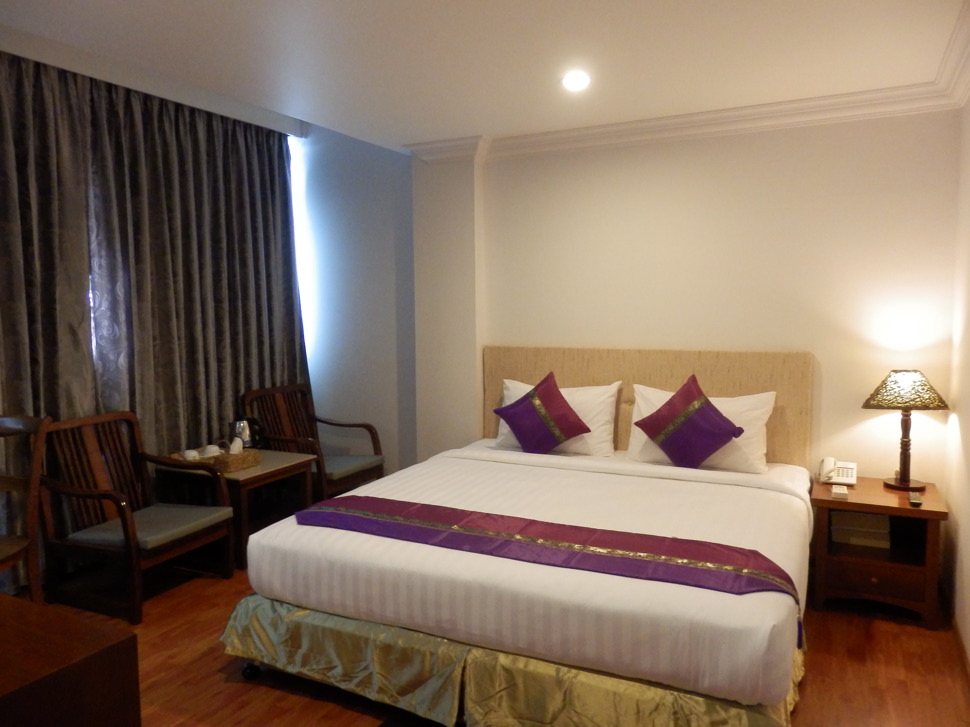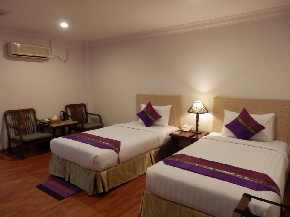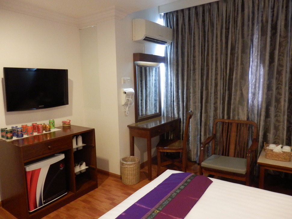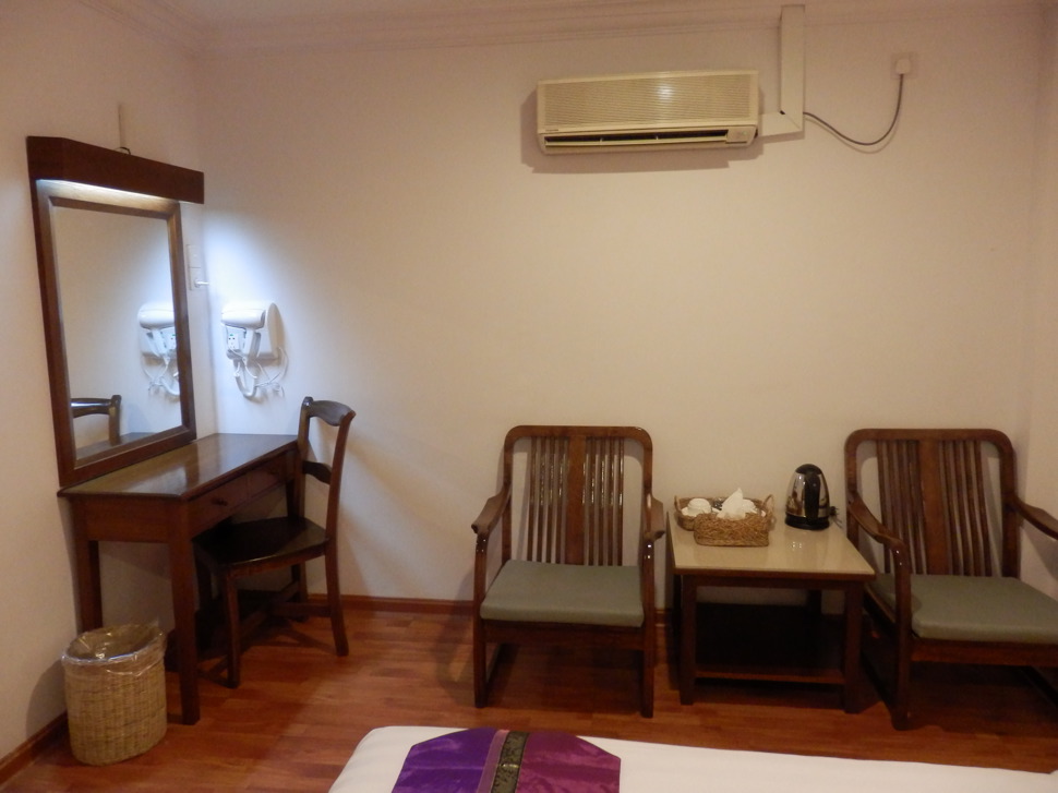 Ansprechend große Zimmer mit Fenster, einige mit Balkon. Teils ist dieser durch die Badezimmer zugänglich, ein absolutes Novum in all den Jahren, die wir schon Hotels ansehen.  Geboten wird zudem Safe, TV, Minibar, Fön, Wasserkocher und ein Tisch mit zwei Stühlen.
