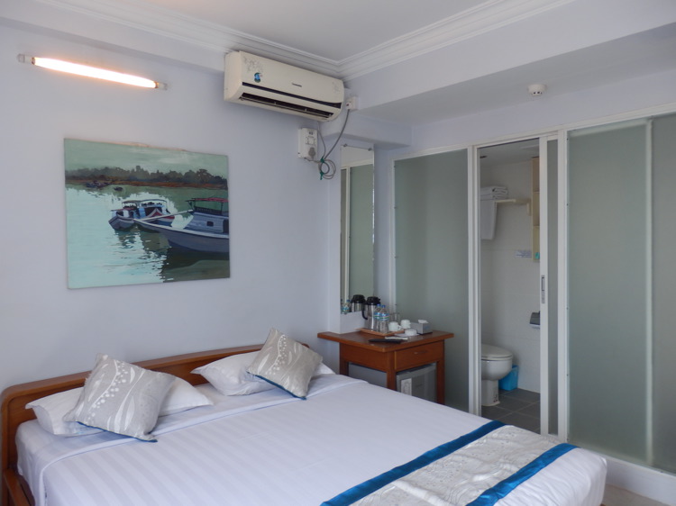 Die Einrichtung ist zwar schon etwas abgewohnt, aber in Ordnung. Gut funktionierende AC. Die Räume sind relativ groß und in allen steht ein Safe. Wer einen Deluxe-Room mit Flussblick wählt, freut sich über eine große Fensterfront. Leider ist es an der Straße relativ lange laut.
