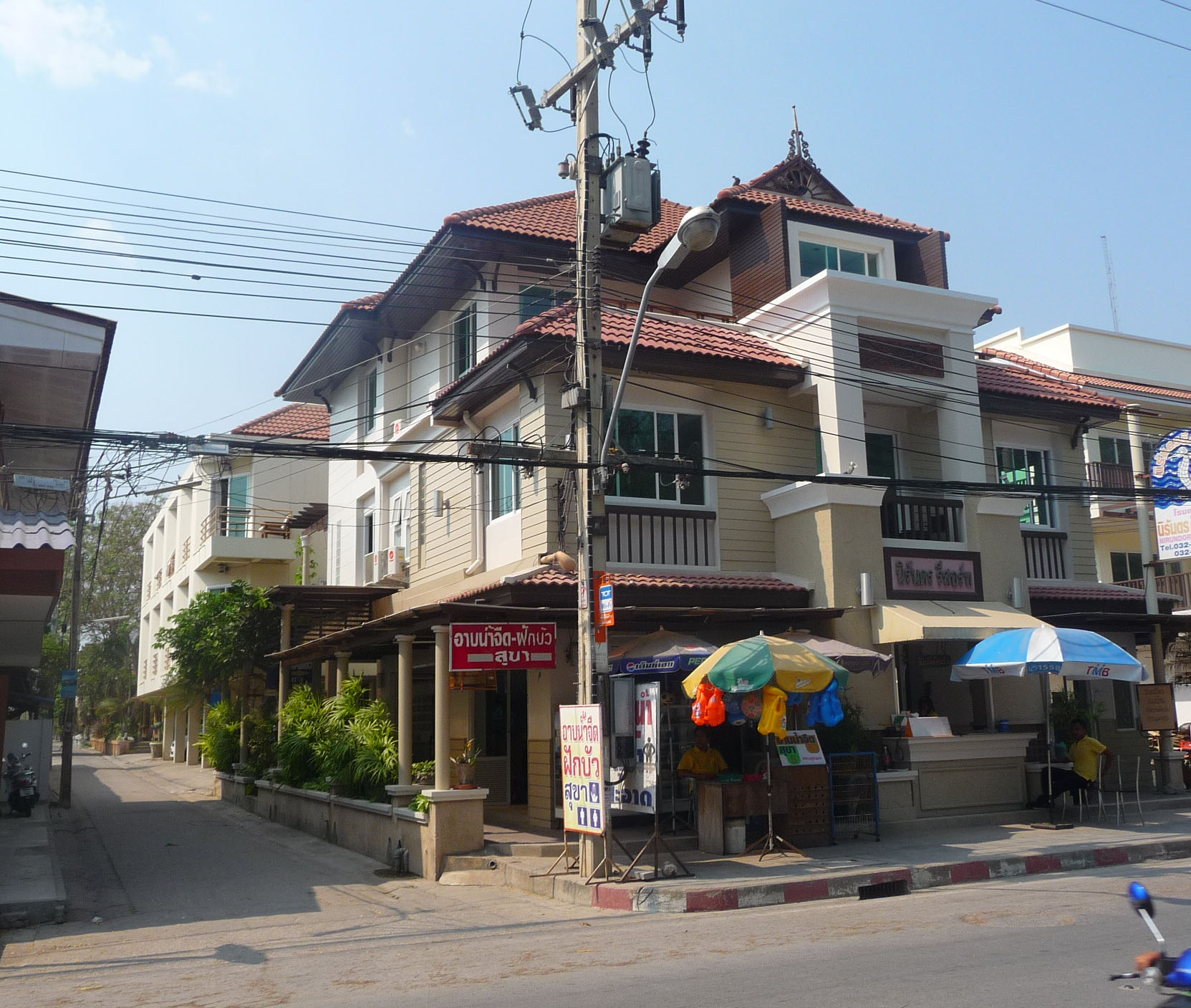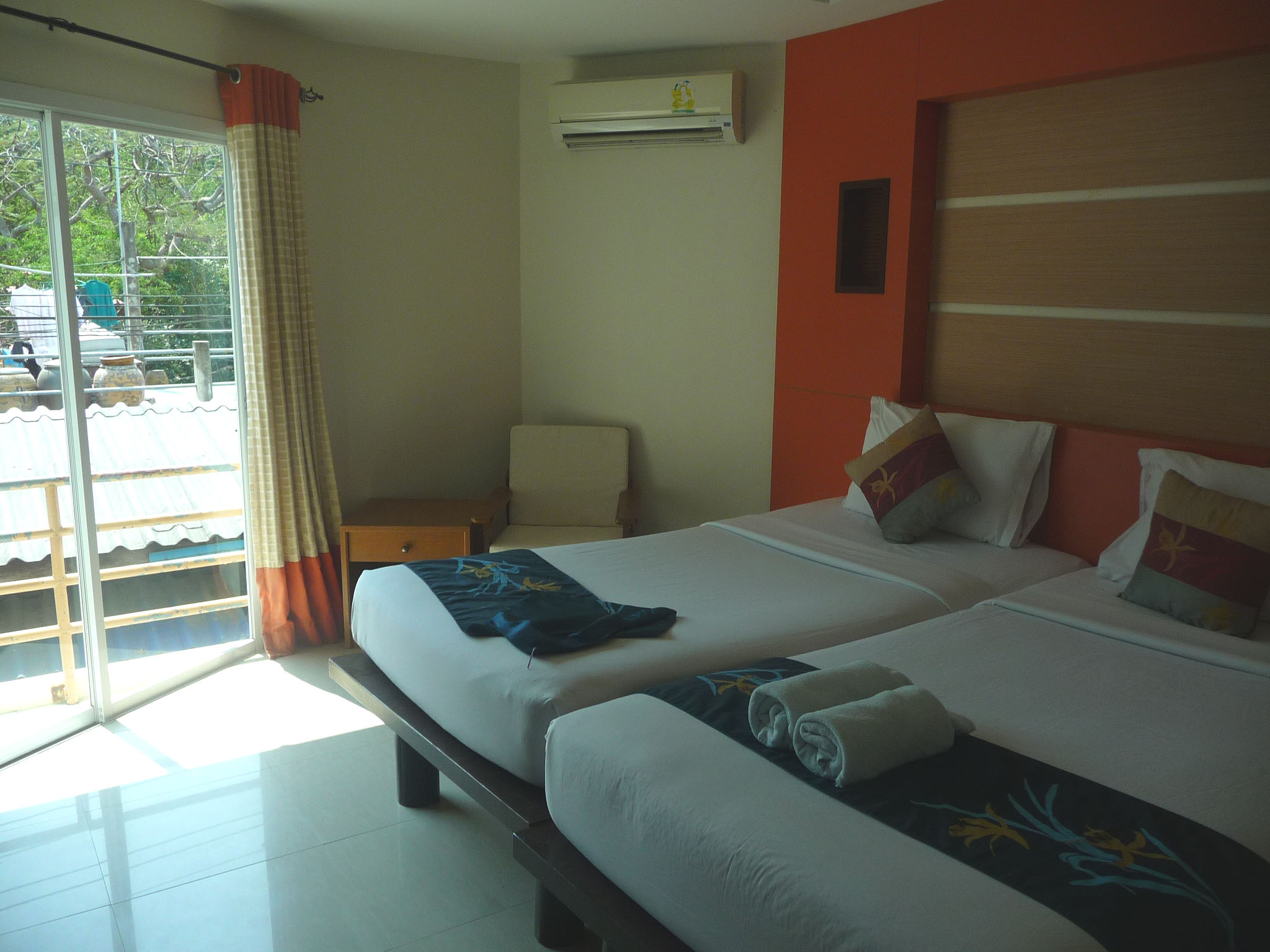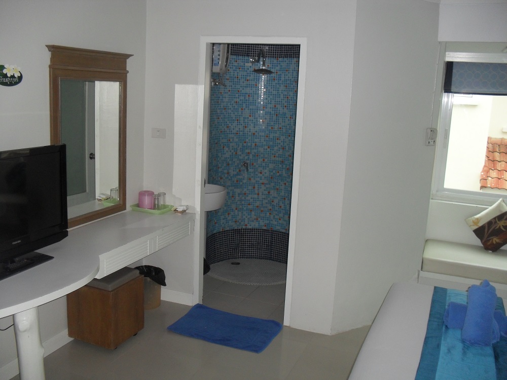 Hübsches, cremefarbenes Holz-Steinhaus direkt an der Strandstraße. Sehr saubere Zimmer. Alle Zimmer sind unterschiedlich eingerichtet, ob mit Blau- oder Brauntönen, mit Mosaikbädern, ob mit Sitzecken oder Balkonen. Sehr gutes Preis-Leistungsverhältnis. Die günstigeren Zimmer mit AC, aber nur mit kaltem Wasser.