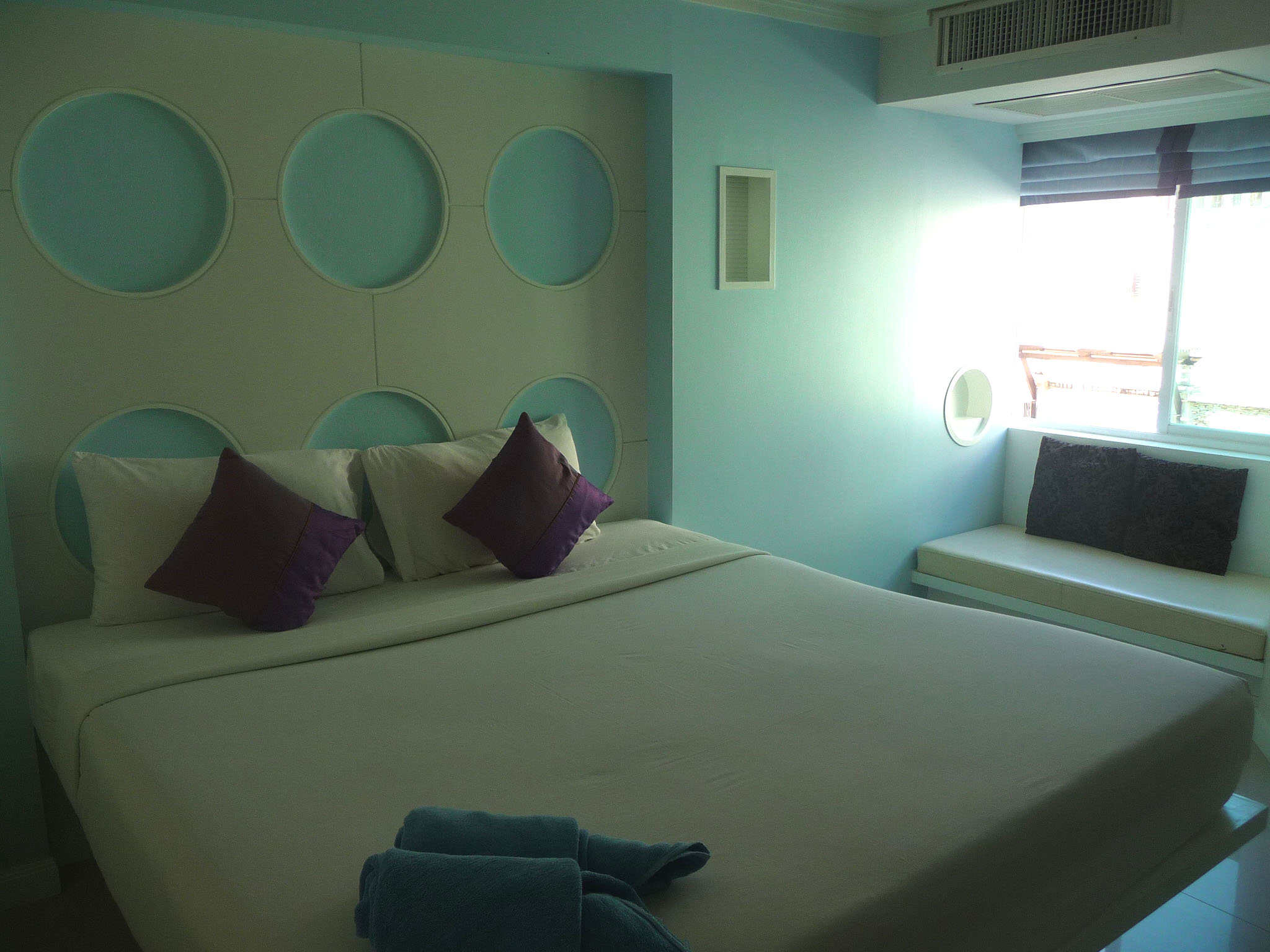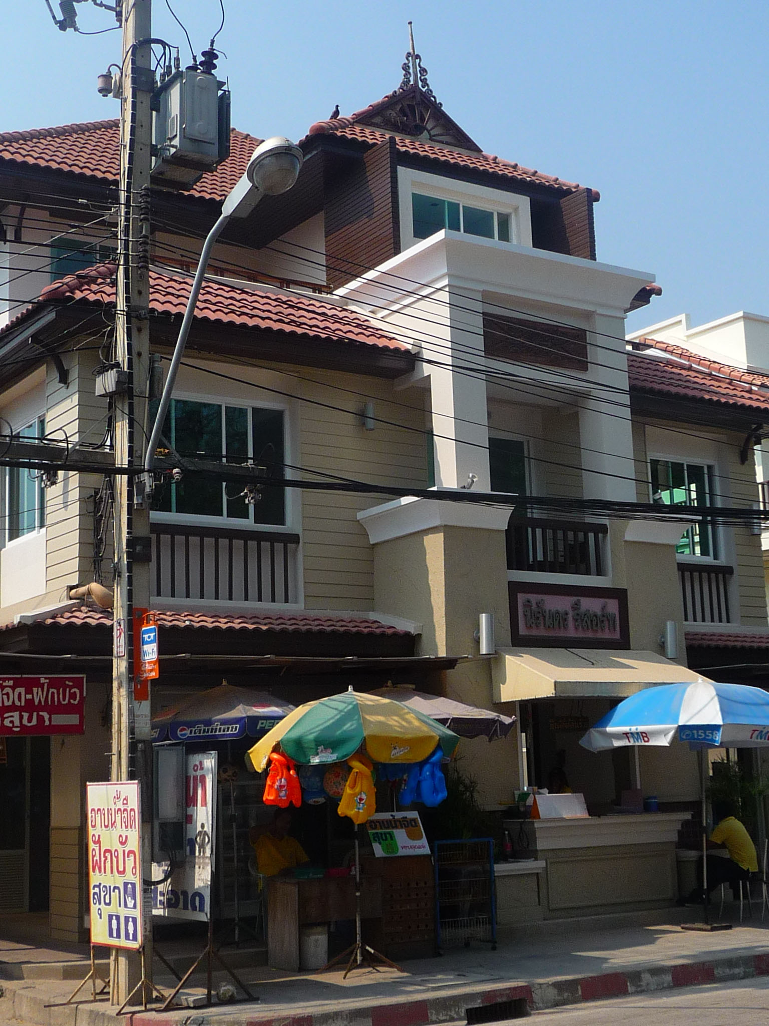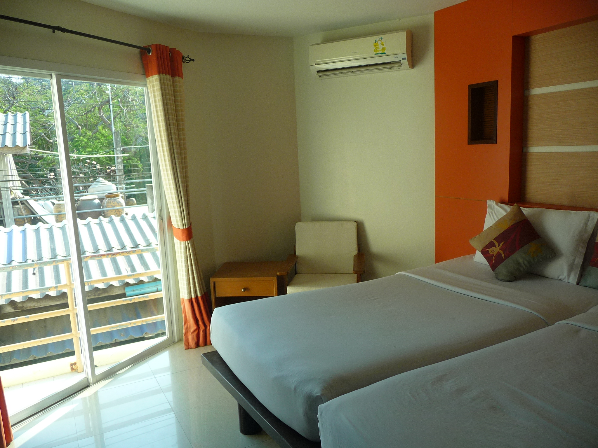 Hübsches, cremefarbenes Holz-Steinhaus direkt an der Strandstraße. Sehr saubere Zimmer. Alle Zimmer sind unterschiedlich eingerichtet, ob mit Blau- oder Brauntönen, mit Mosaikbädern, ob mit Sitzecken oder Balkonen. Sehr gutes Preis-Leistungsverhältnis. Die günstigeren Zimmer mit AC, aber nur mit kaltem Wasser.