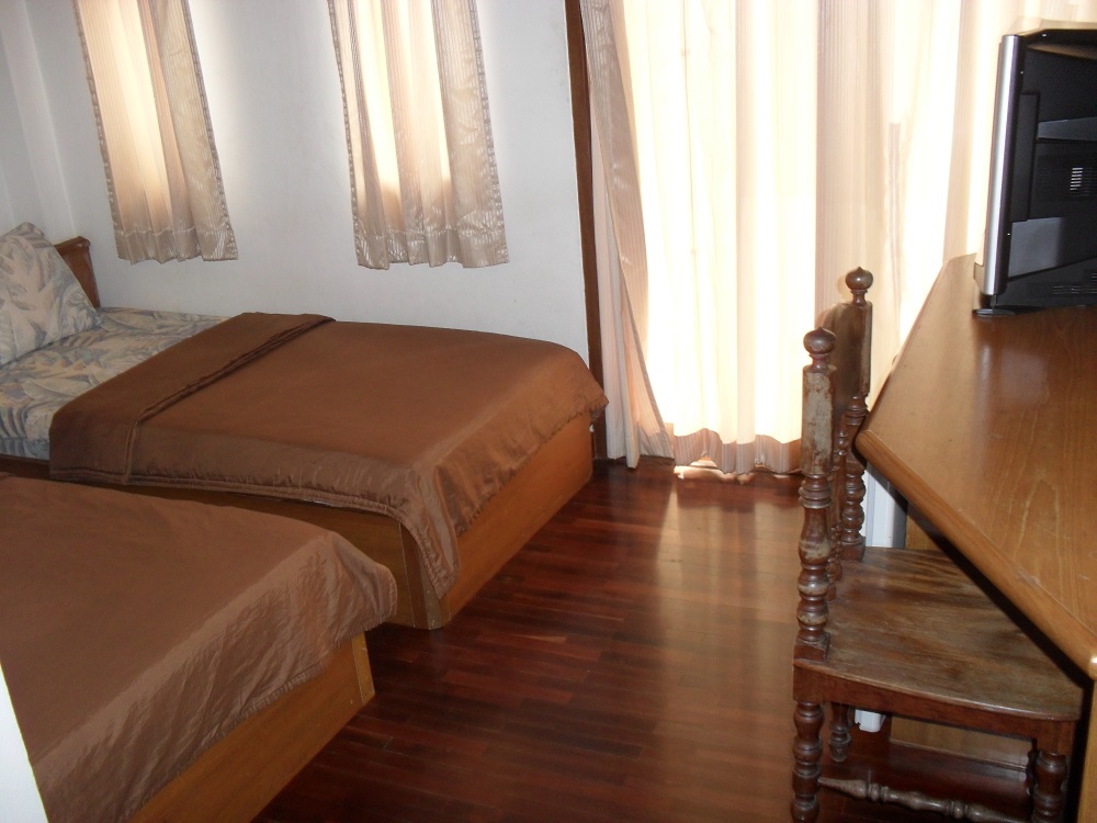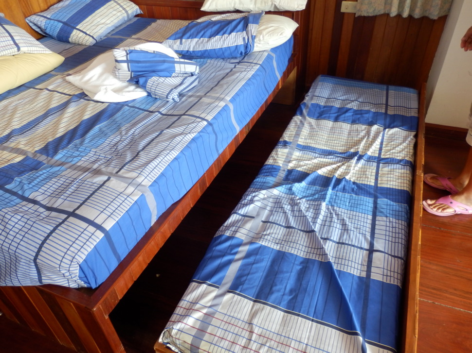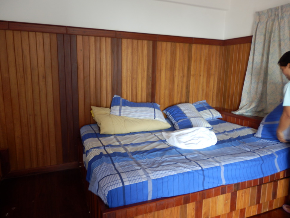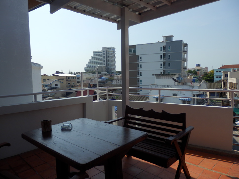 Ganz oben lockt nach dem anstrengenden Aufstige (es gibt keinen Aufzug) ein Zimmer für 3-4 Personen mit großer Dachterrasse (1000 Baht).