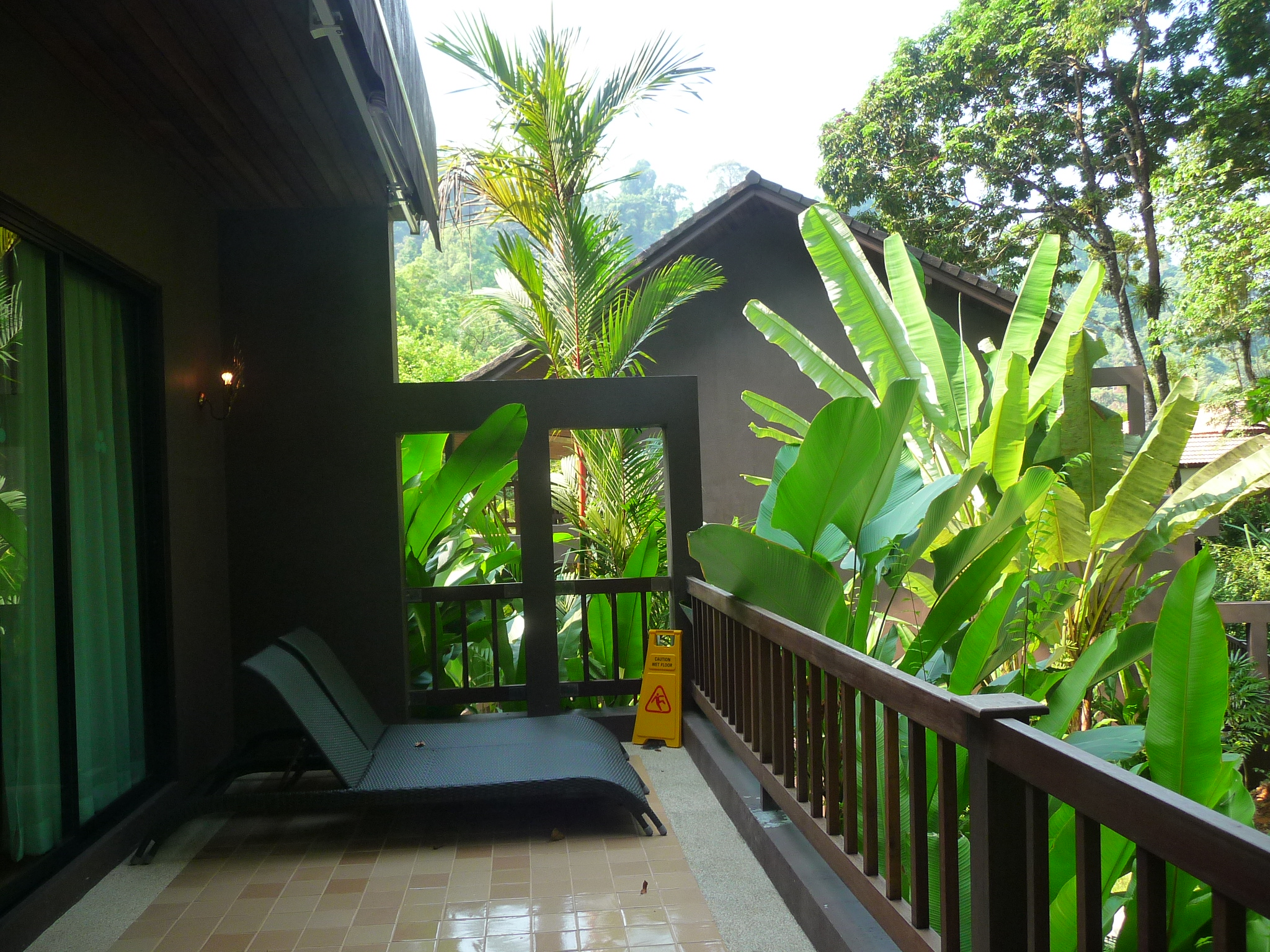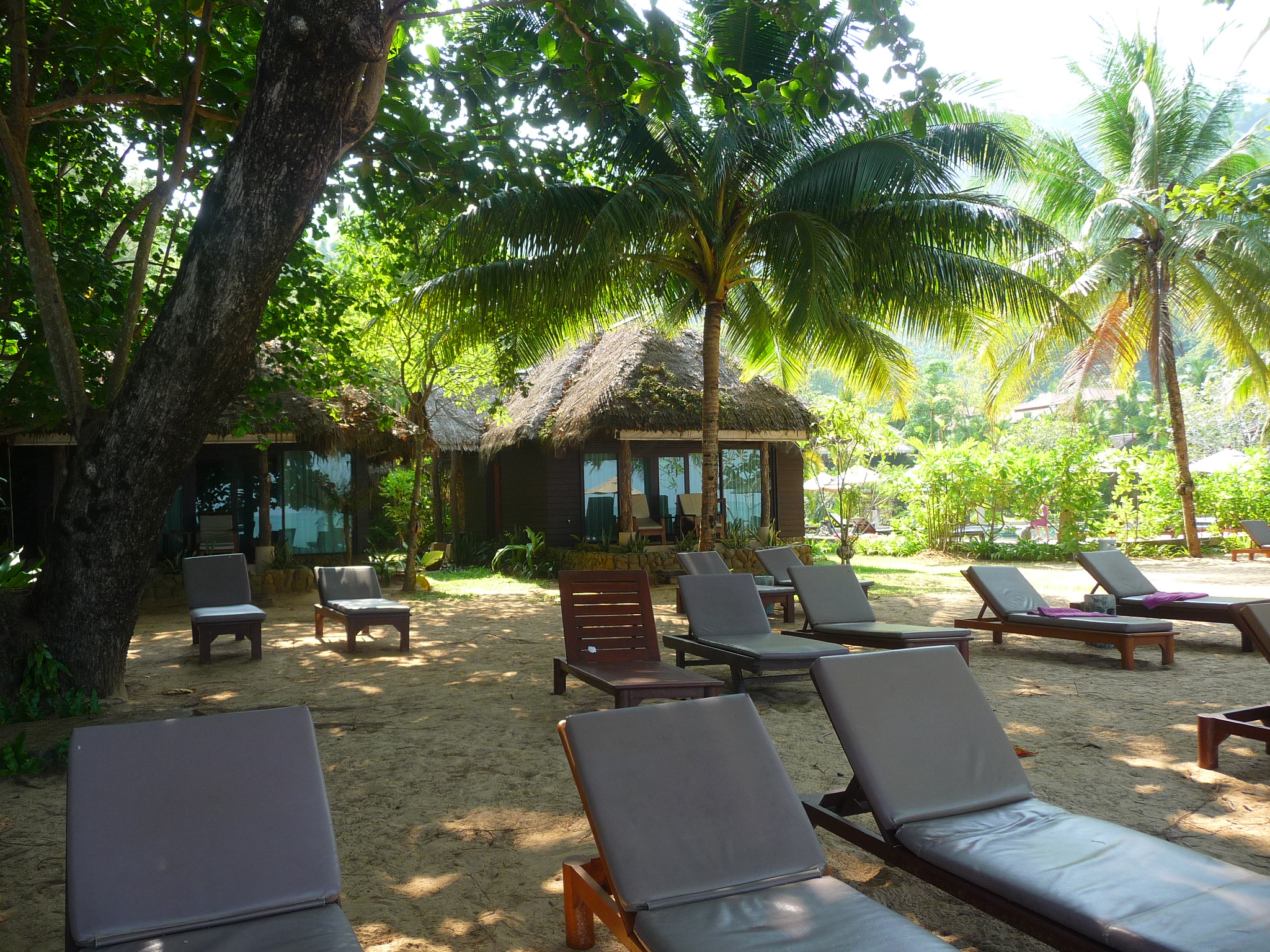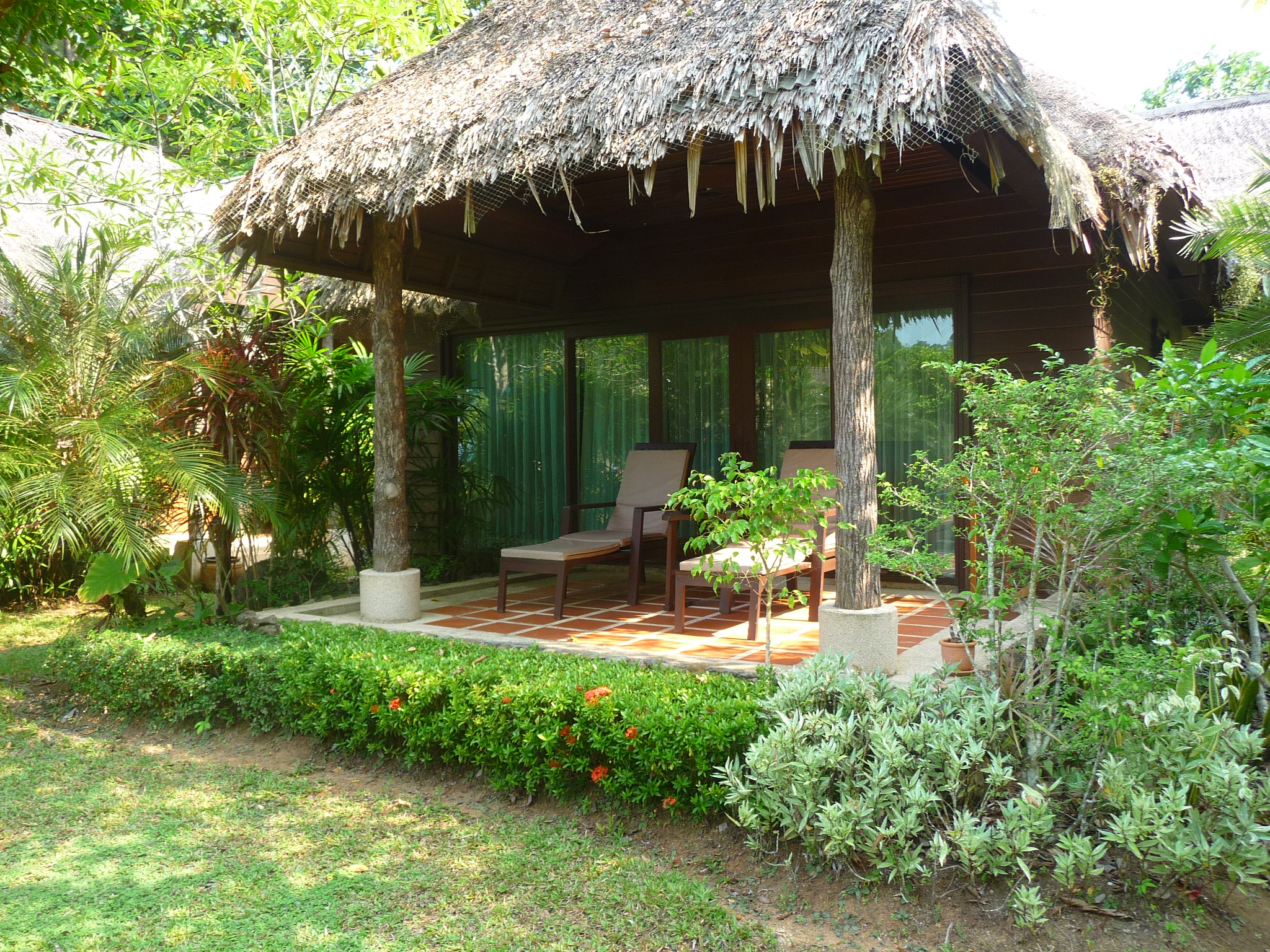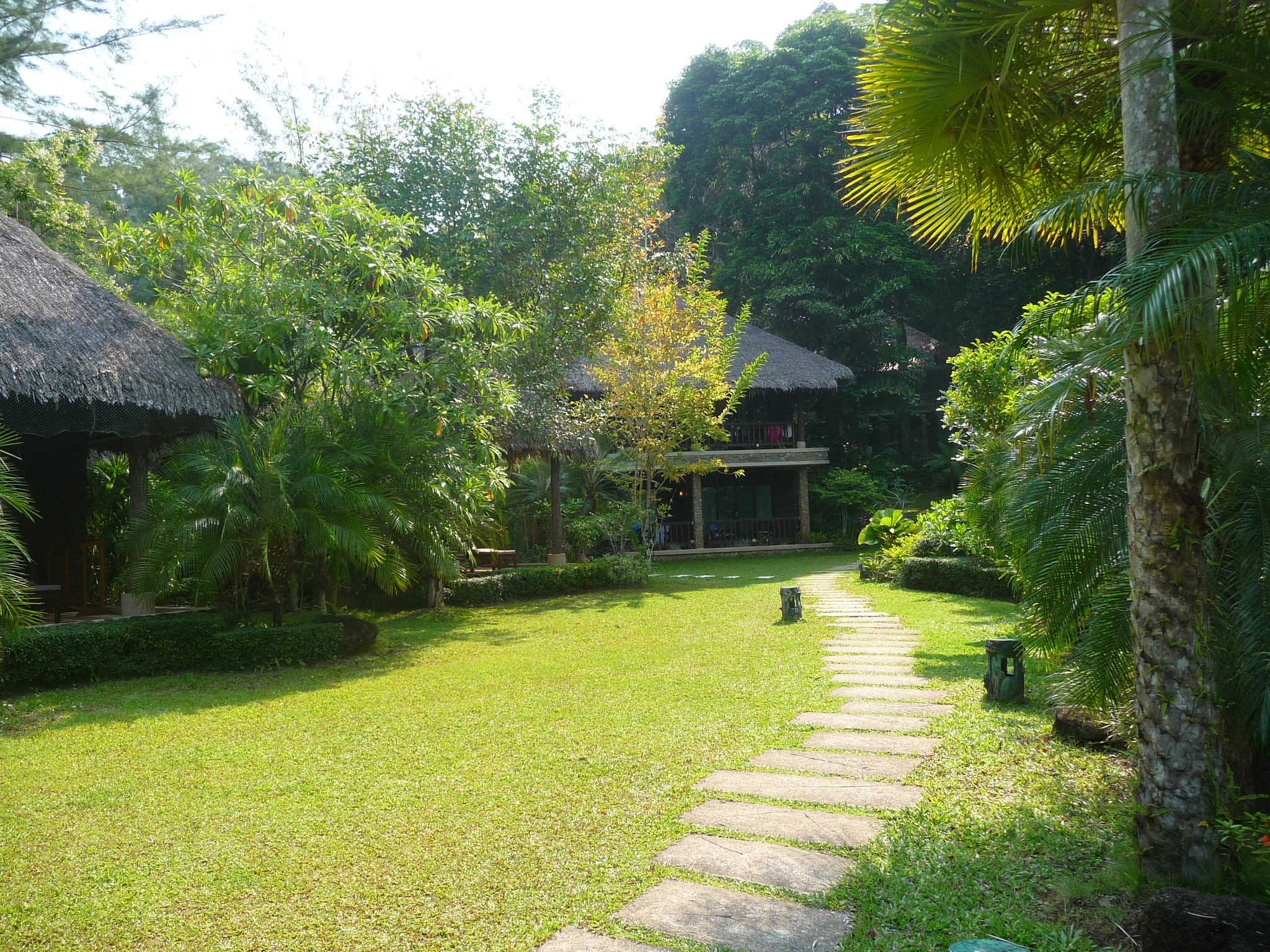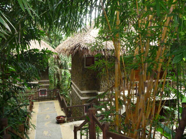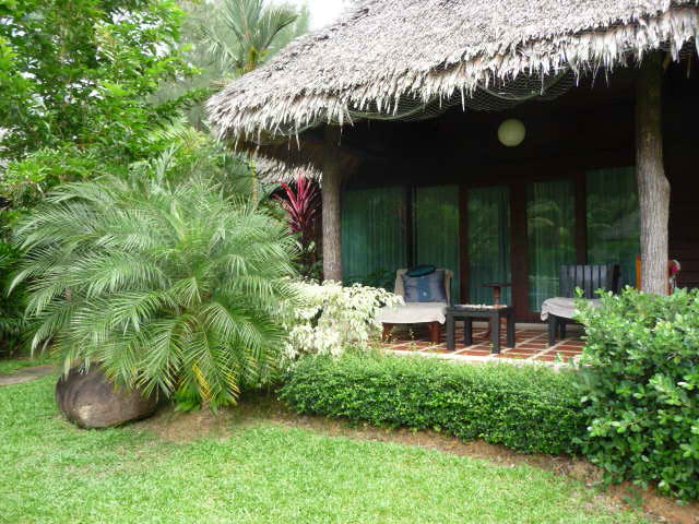 Die Bungalows stehen im Hang und im Garten.