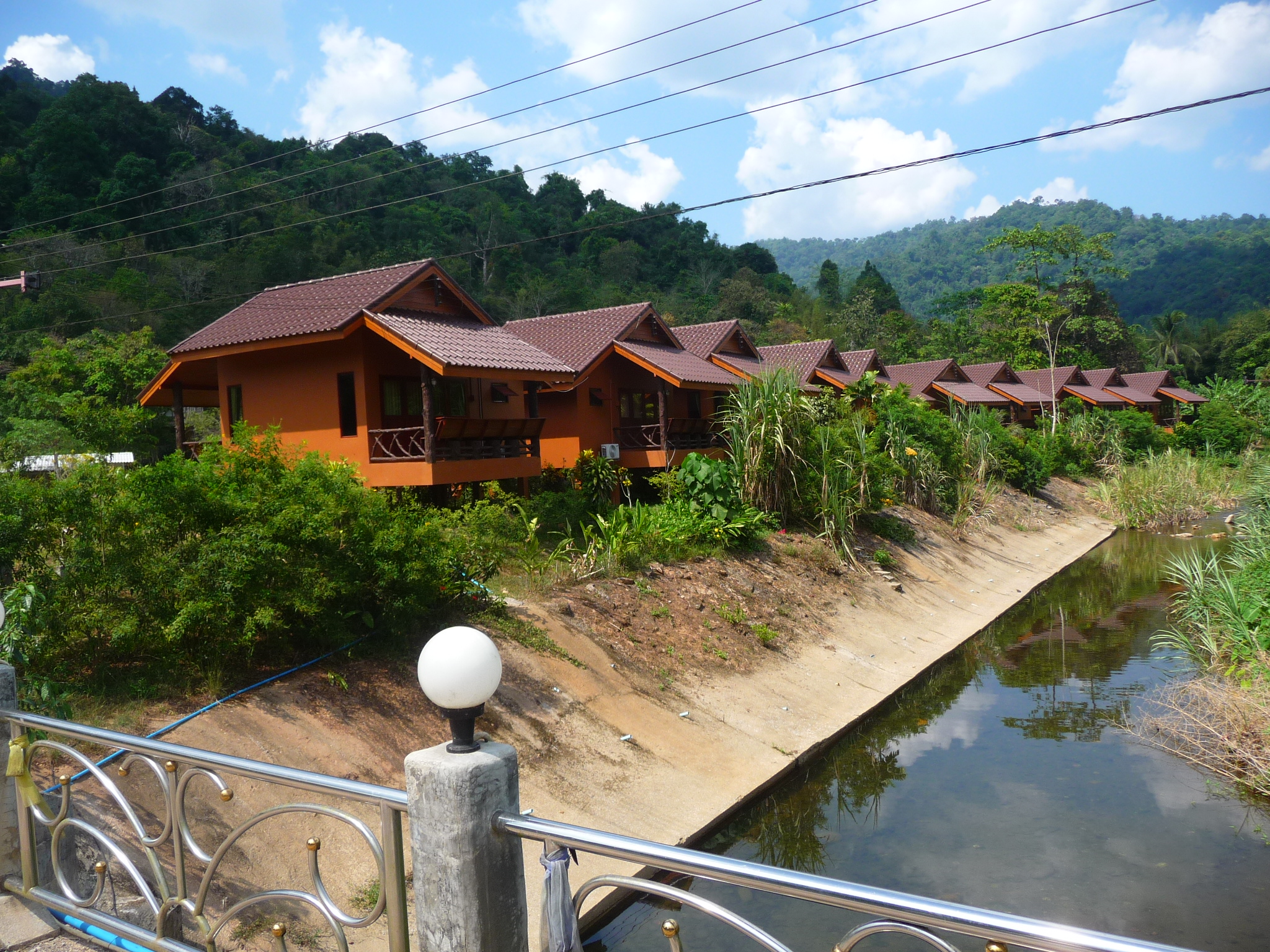 Daneben gibt es eine neue Reihe Bungalows am Fluss, leider wurde eine große Fläche Wald gerodet.