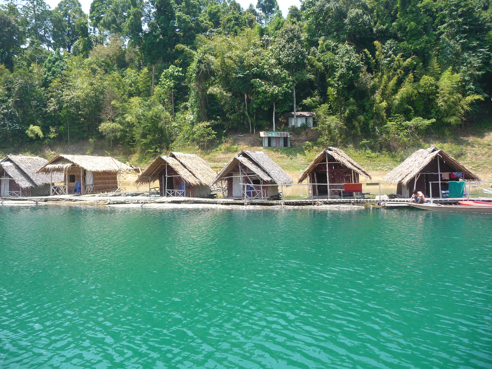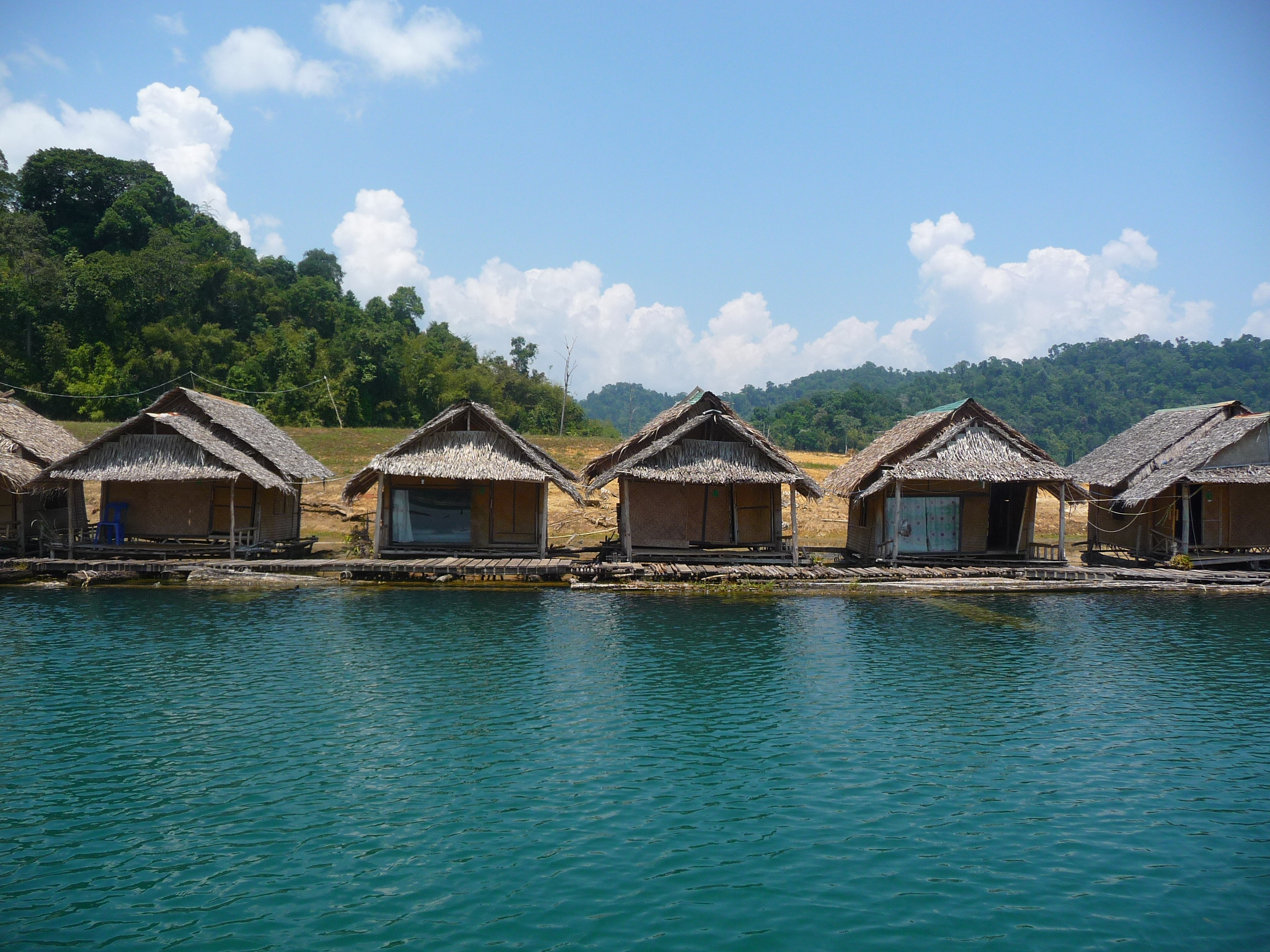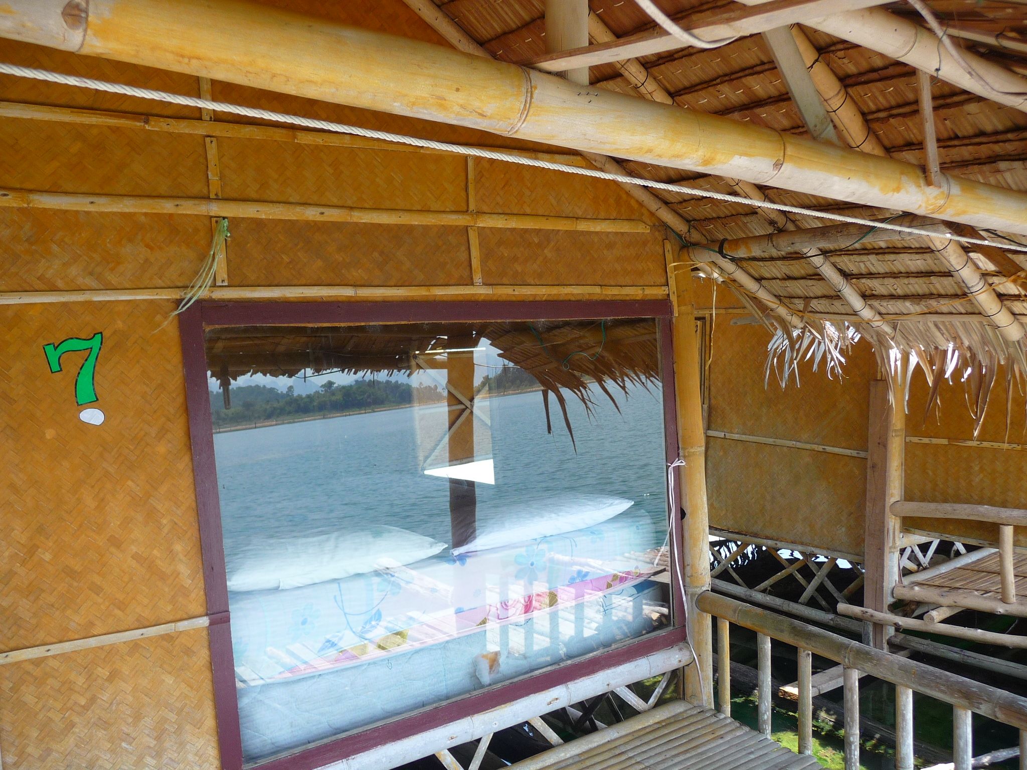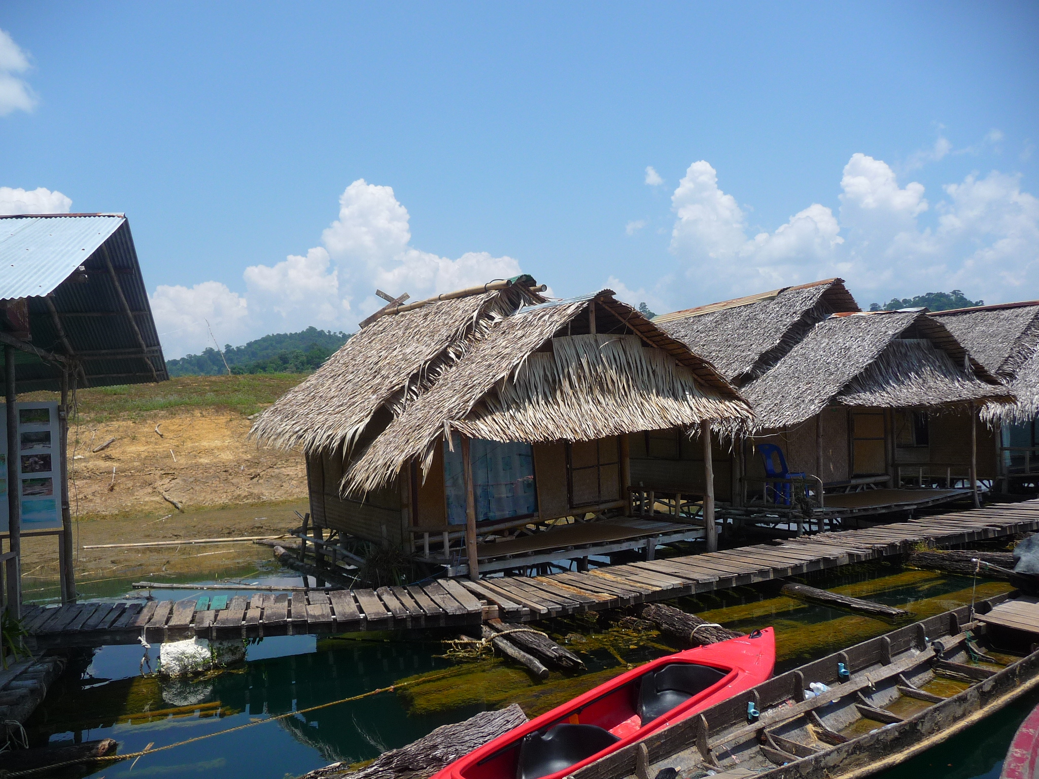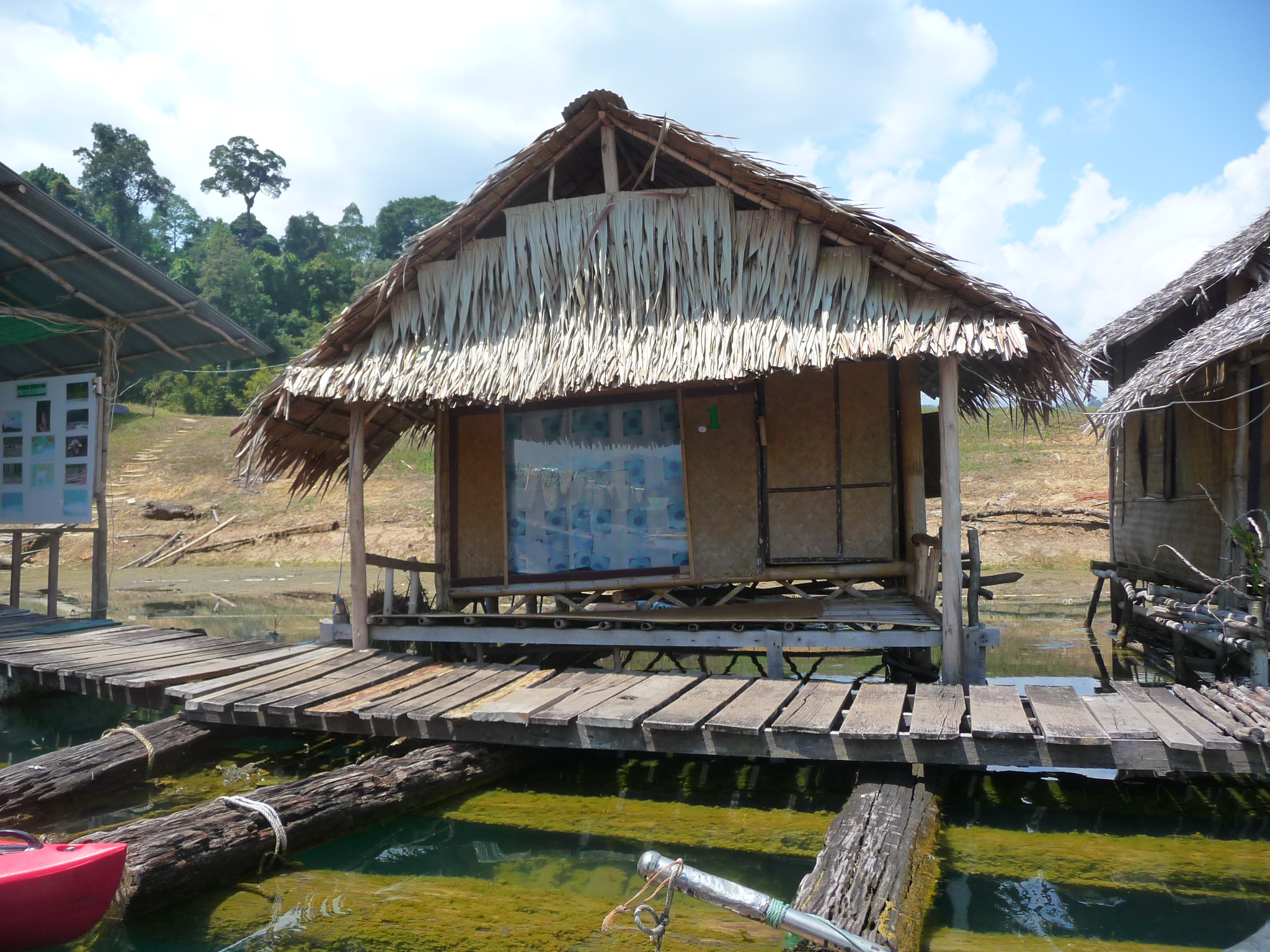 Nationalpark-Bungalows: einfache Bambusbungalows auf dem See ohne eigenem Bad. Dazu gibt es Gruppenunterkünfte am Ufer.