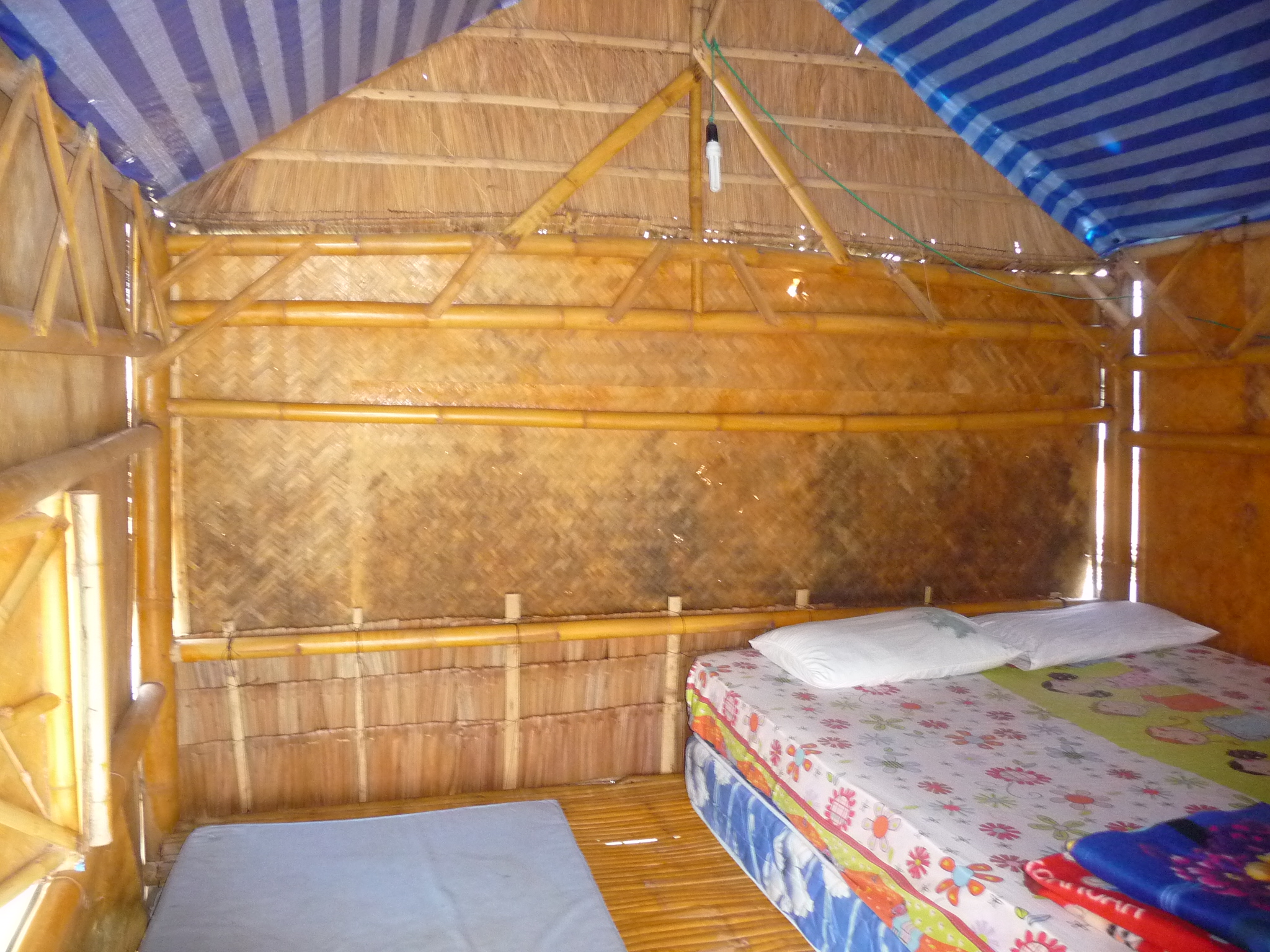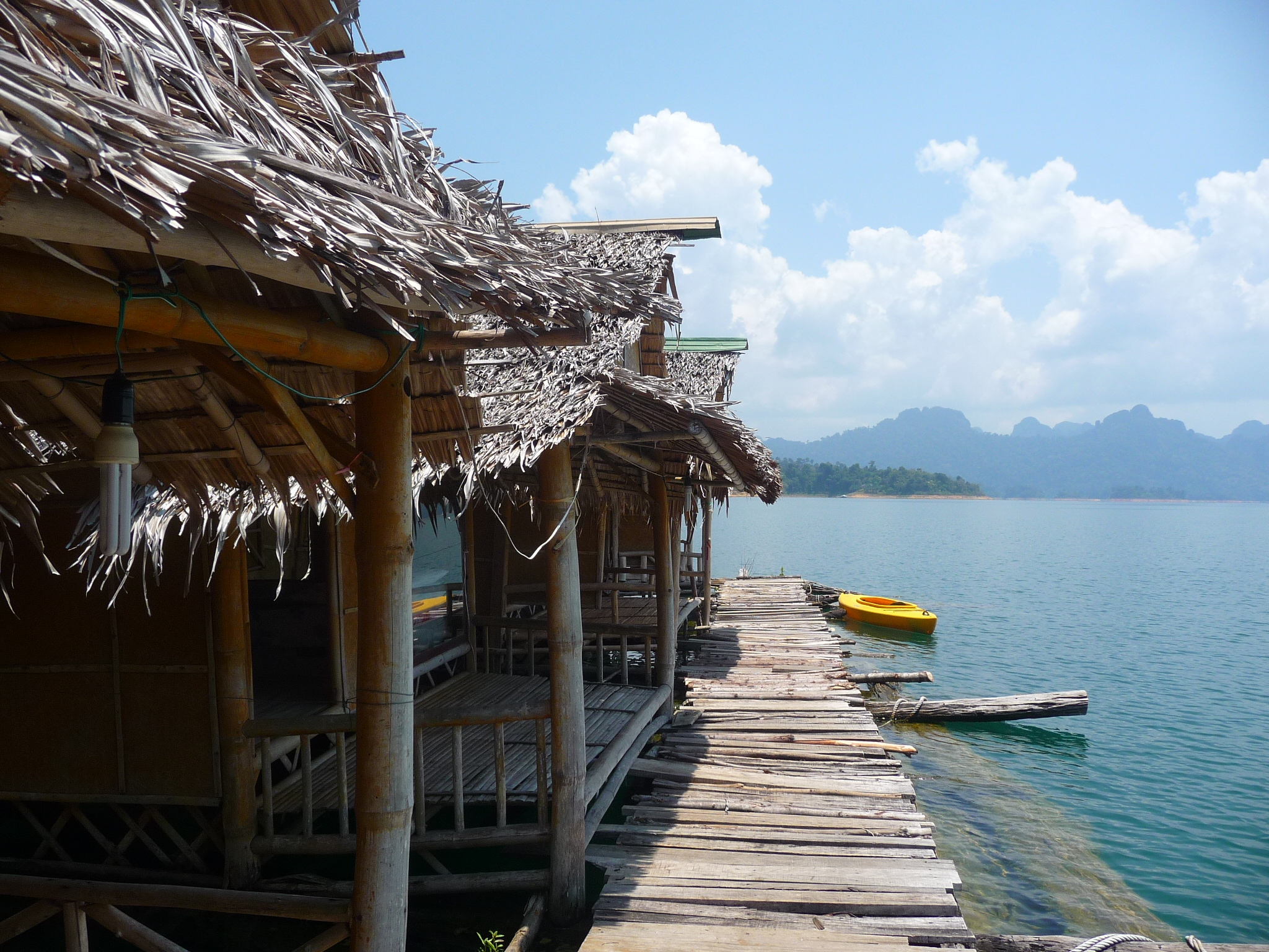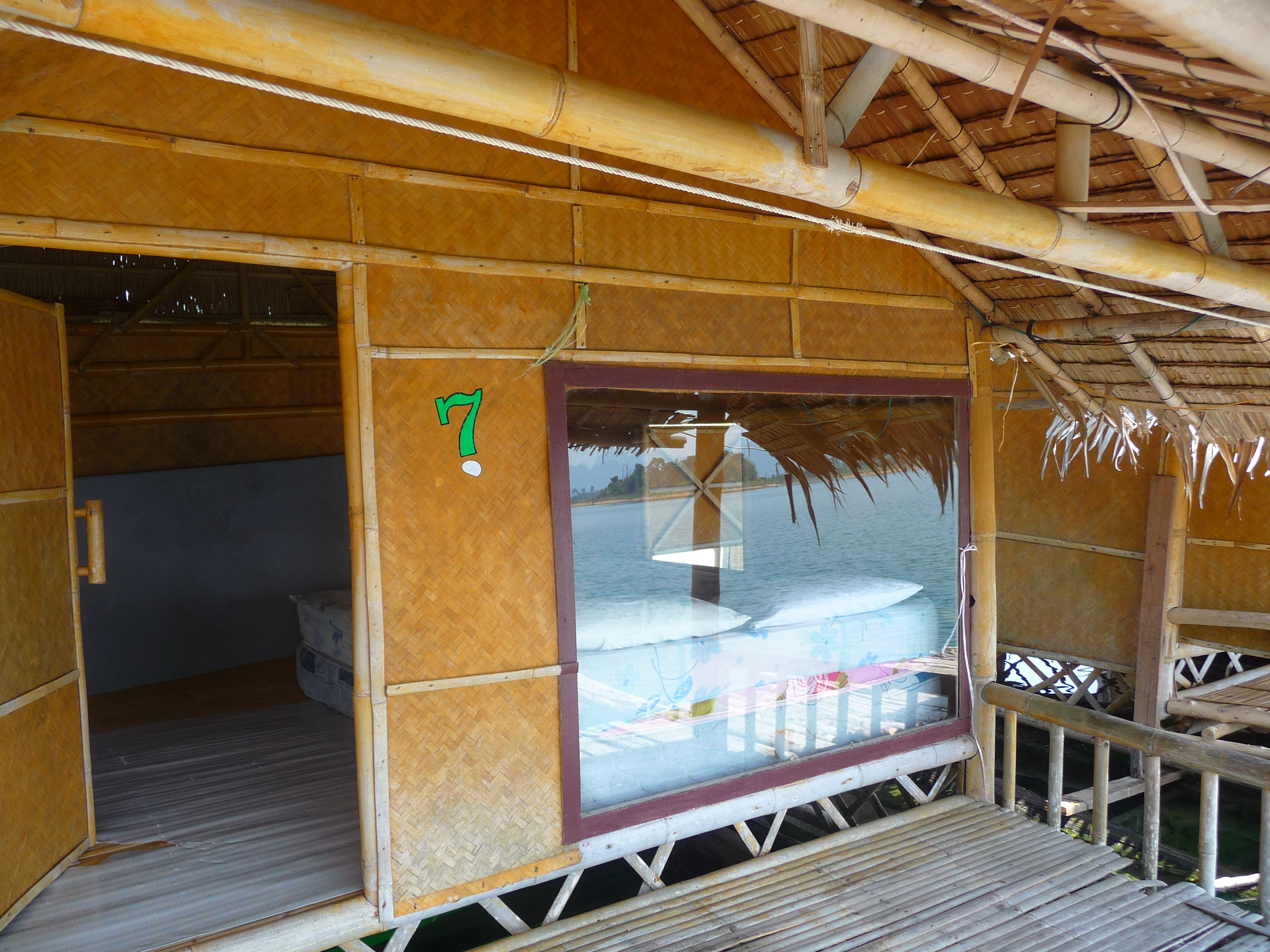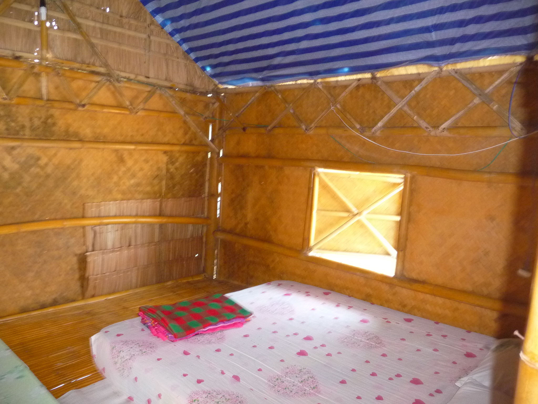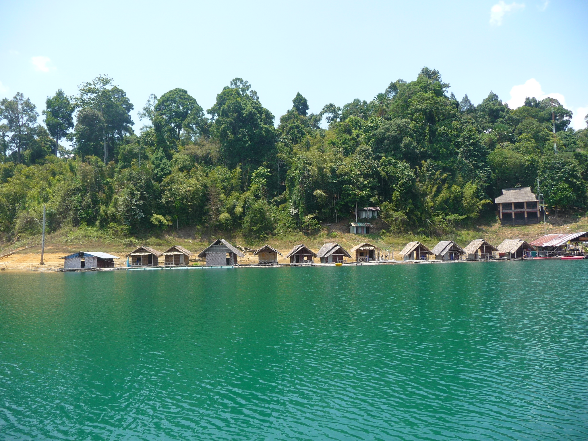 Nationalpark-Bungalows: einfache Bambusbungalows auf dem See ohne eigenem Bad. Dazu gibt es Gruppenunterkünfte am Ufer.