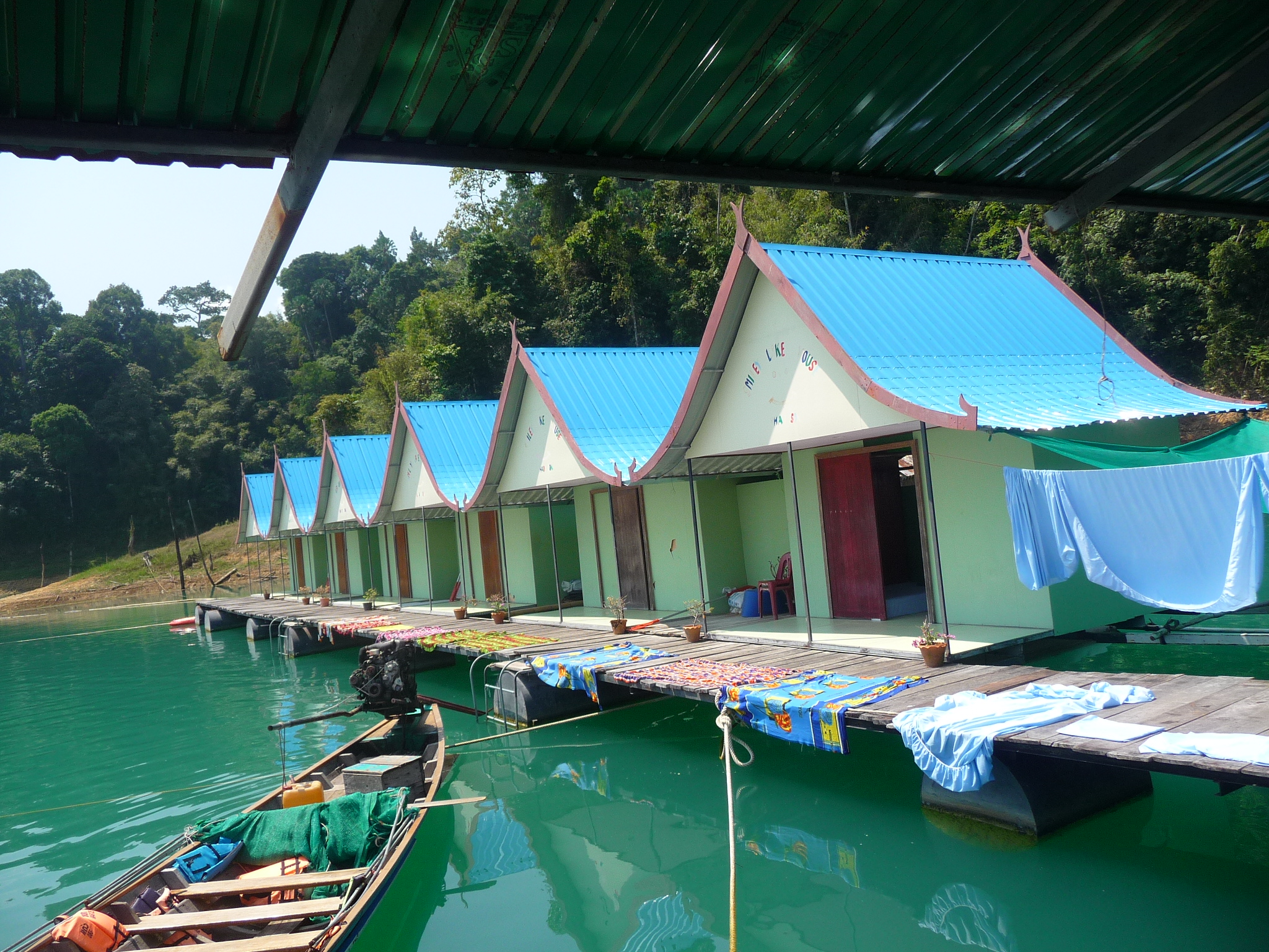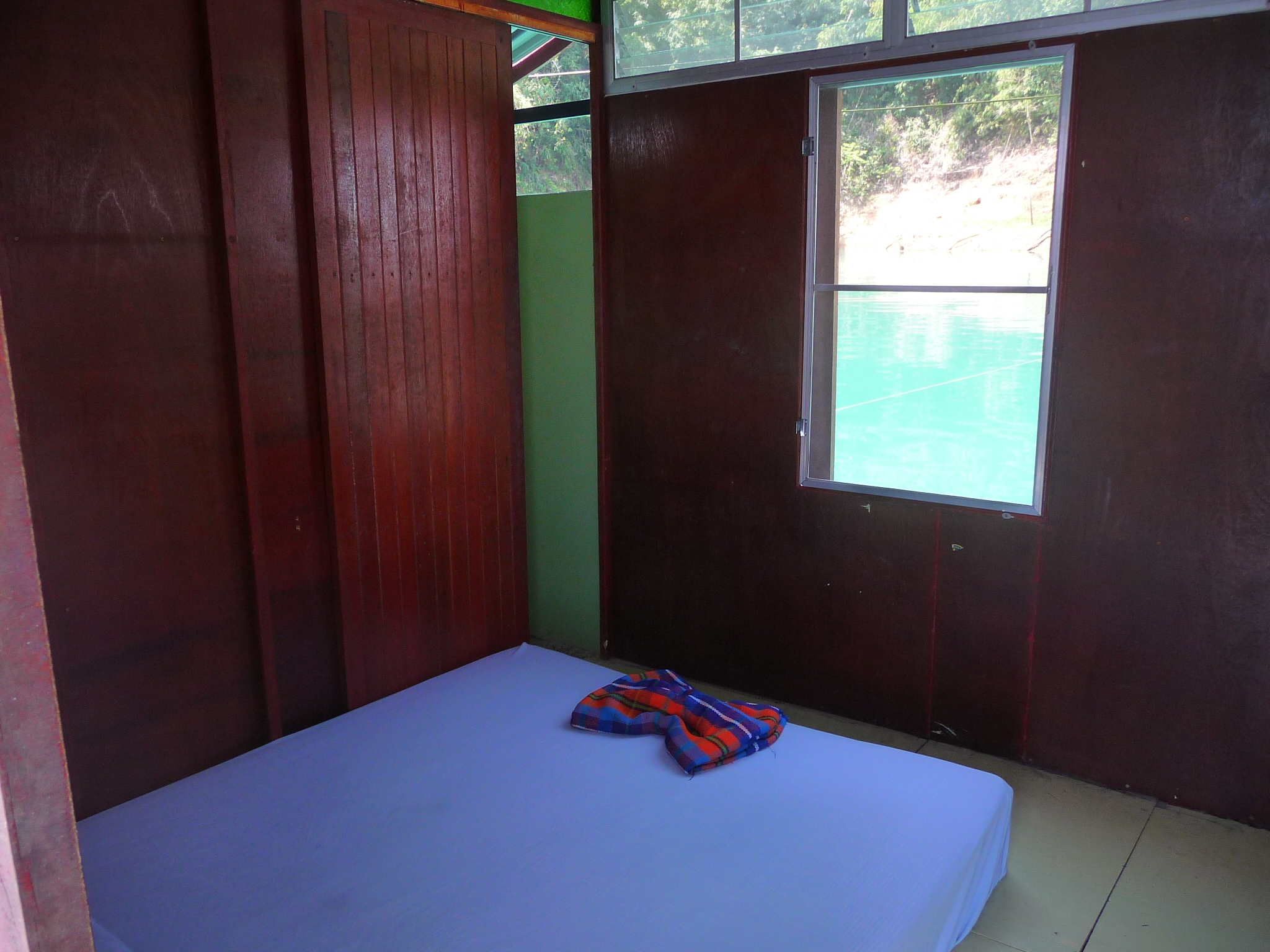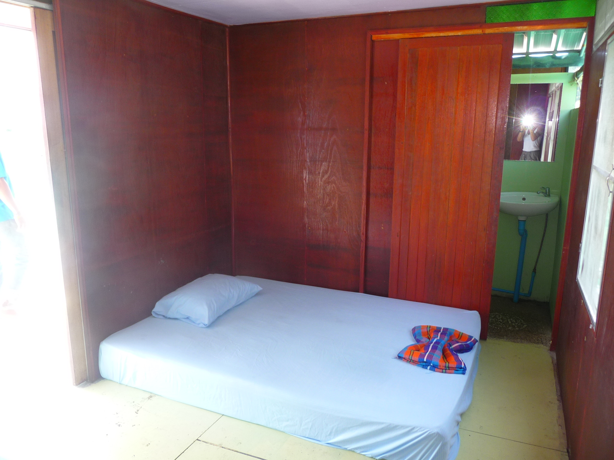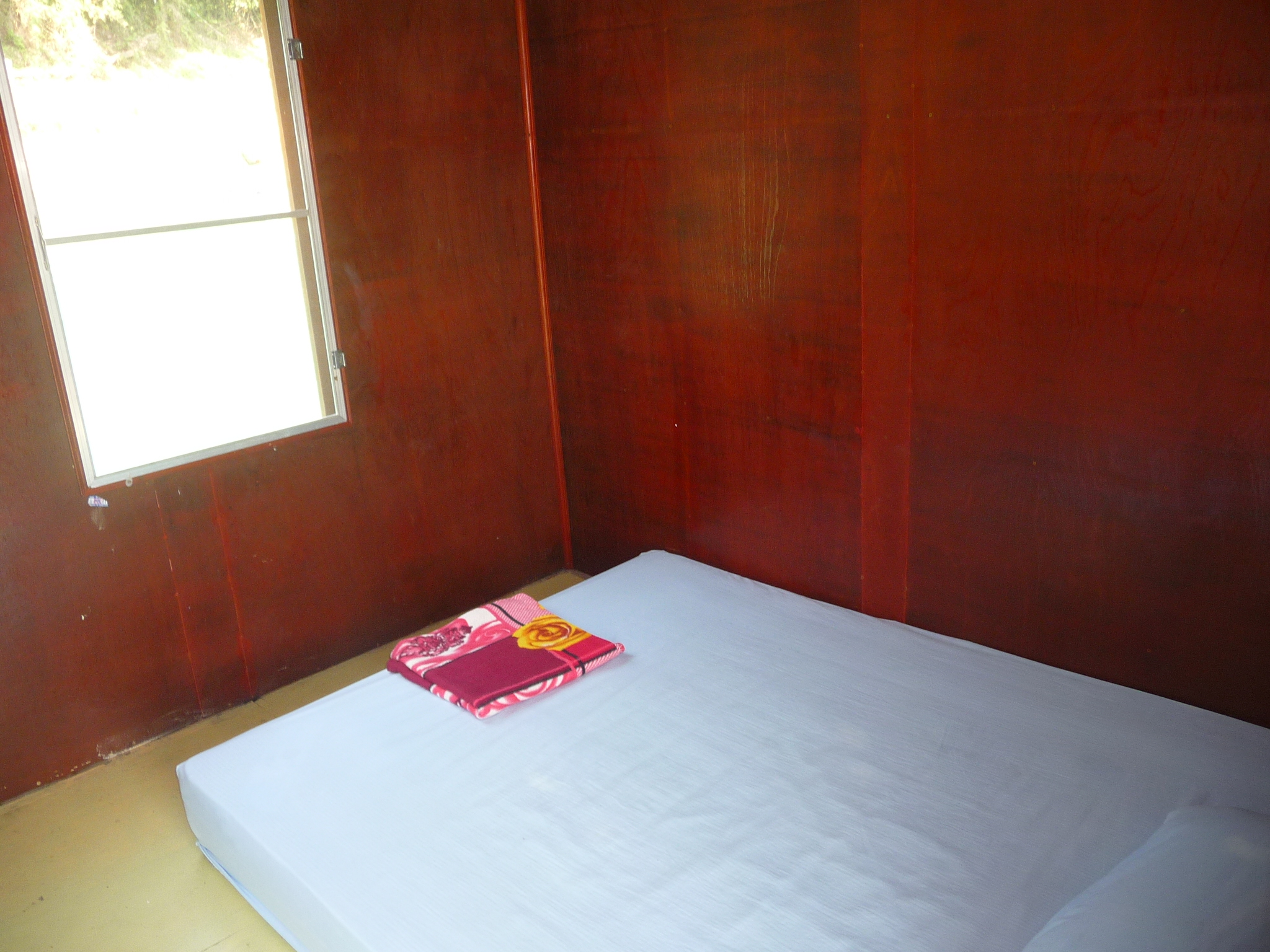 11 einfache, saubere und winzigkleine Holzbungalows auf dem See: Matratze auf dem Boden und ein kleines eigenes Bad.