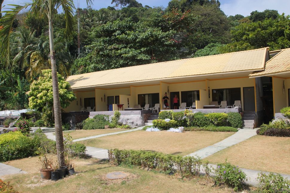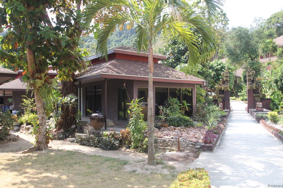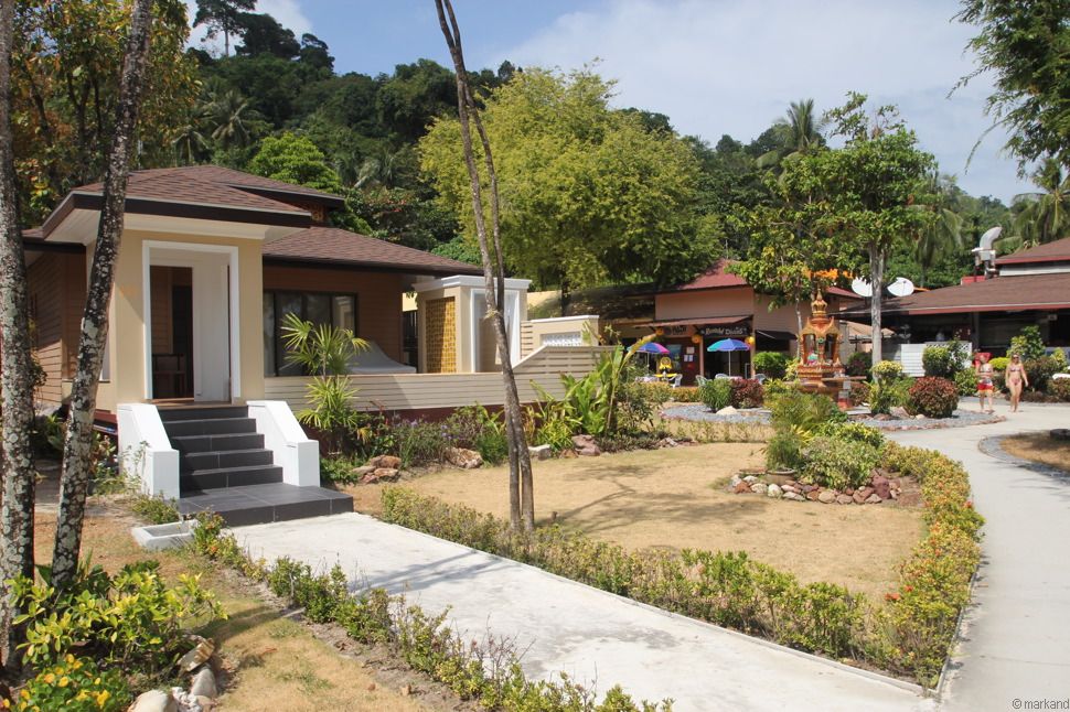 Große Anlage im zentralen Strandabschnitt mit schönen großen Bungalows und etwas preiswerteren Zimmern in kleinen Reihenhäusern. Restaurant, Minimarkt und Tauchbasis "Rainbow Divers".
