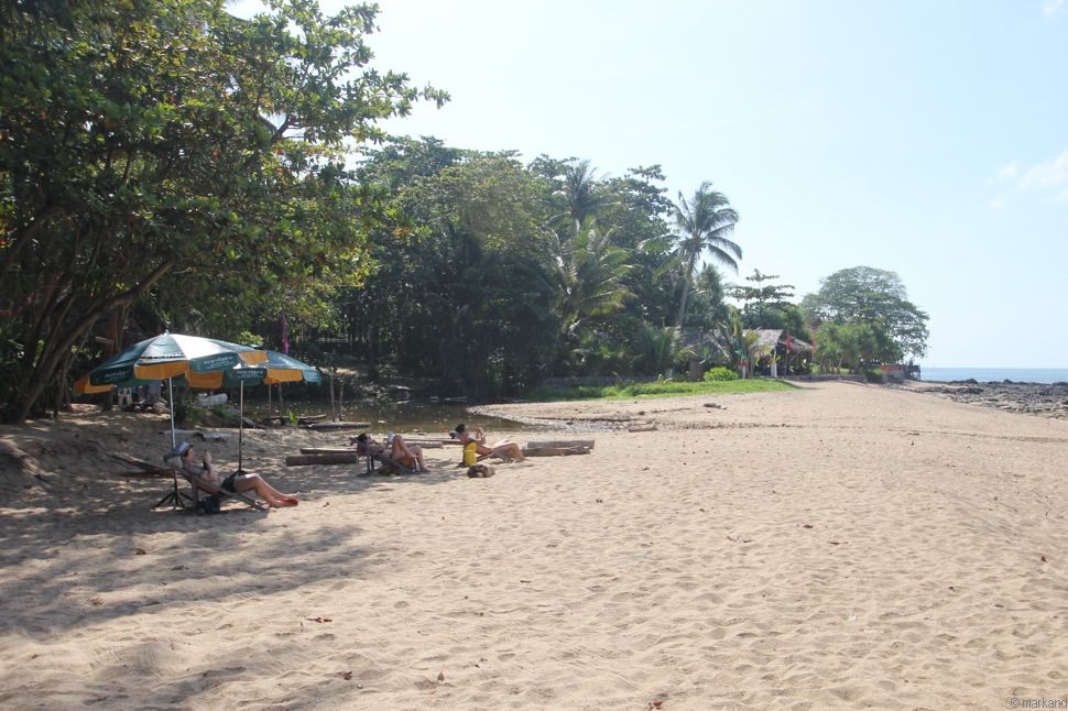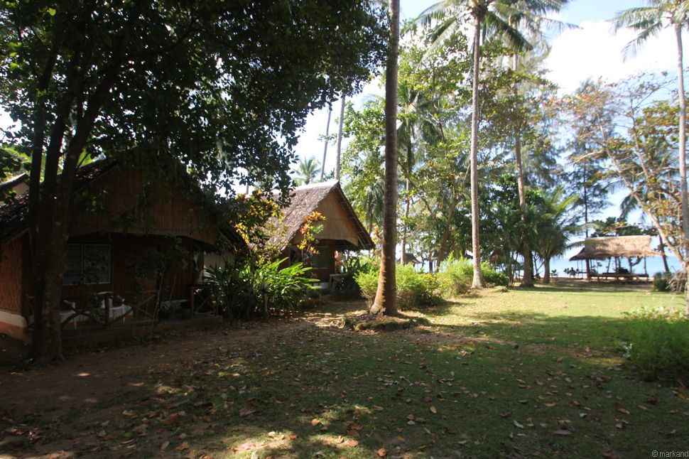 In einer kleinen Bucht nahe des Klong Nin stehen 20 Stein- oder Bambusbungalows in einer Gartenanlage unter schattigen Bäumen.