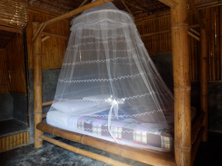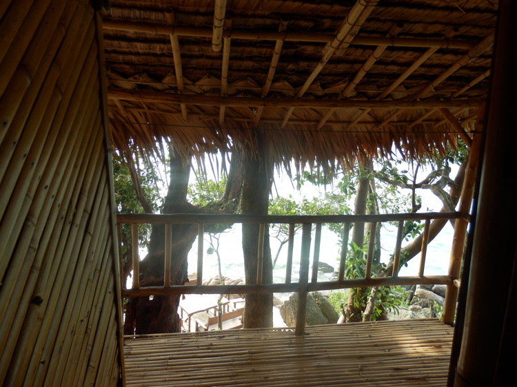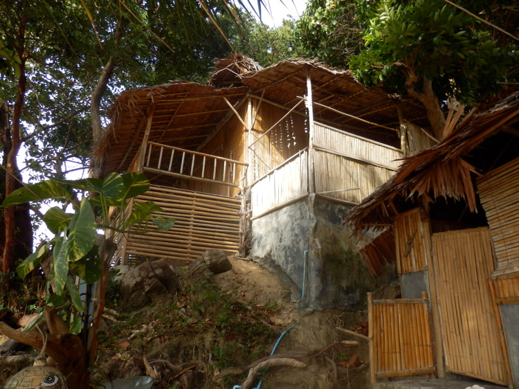 Kleine Anlage mit großen einfachen Bungalows, große Veranden. Das Tolle: die Seitenfronten lassen sich fast in Gänze öffnen, so dass auch bei der stärksten Hitze viel Luft zirkulieren kann.